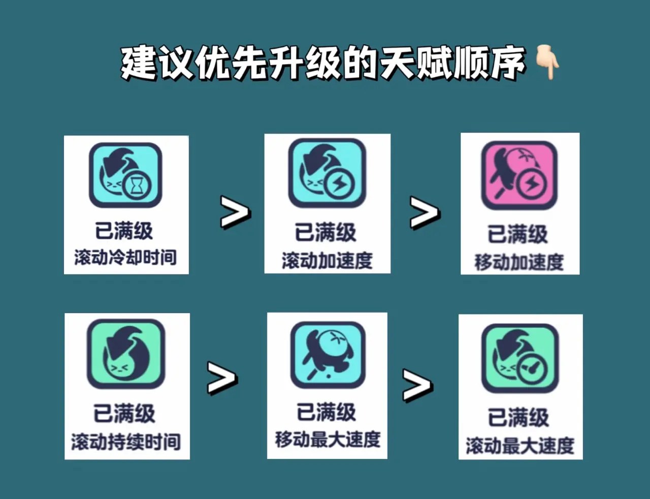 2、原因:在这个游戏中,谁能够最快到达重点谁就获得胜利,所以移动速度肯定是最重要的,由于大多数情况我们都是正常移动,所以优先选择基础加速度,其次选择最大速度。