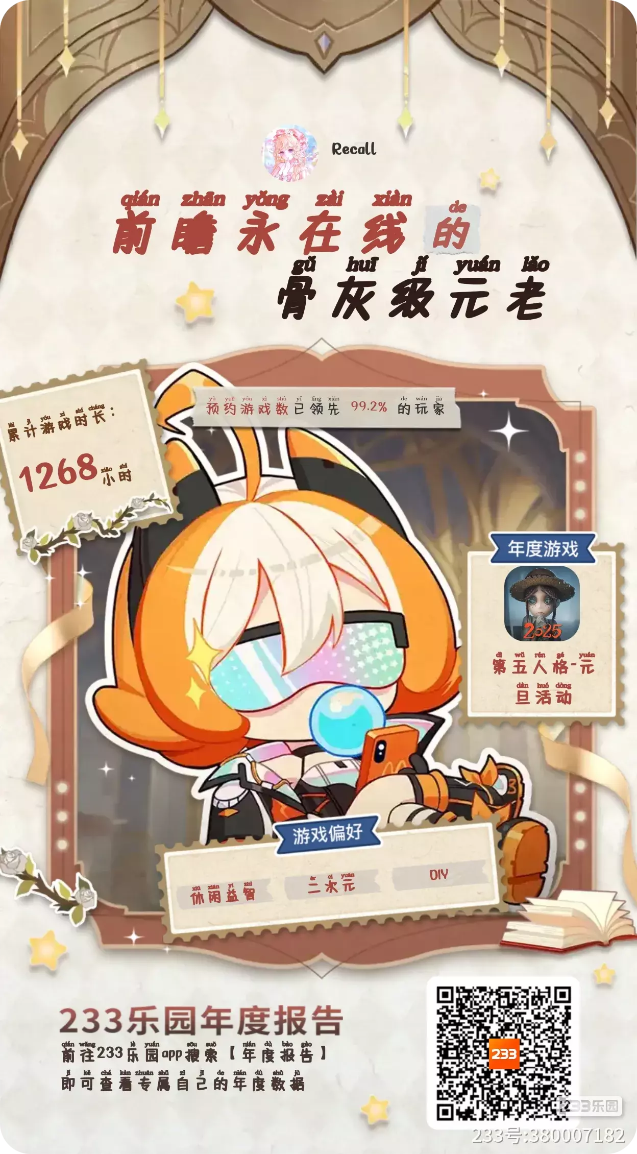 hei,我是Recall,加入233已经648天了,新年将至,愿你我都快乐幸福,没有烦恼,没有委屈