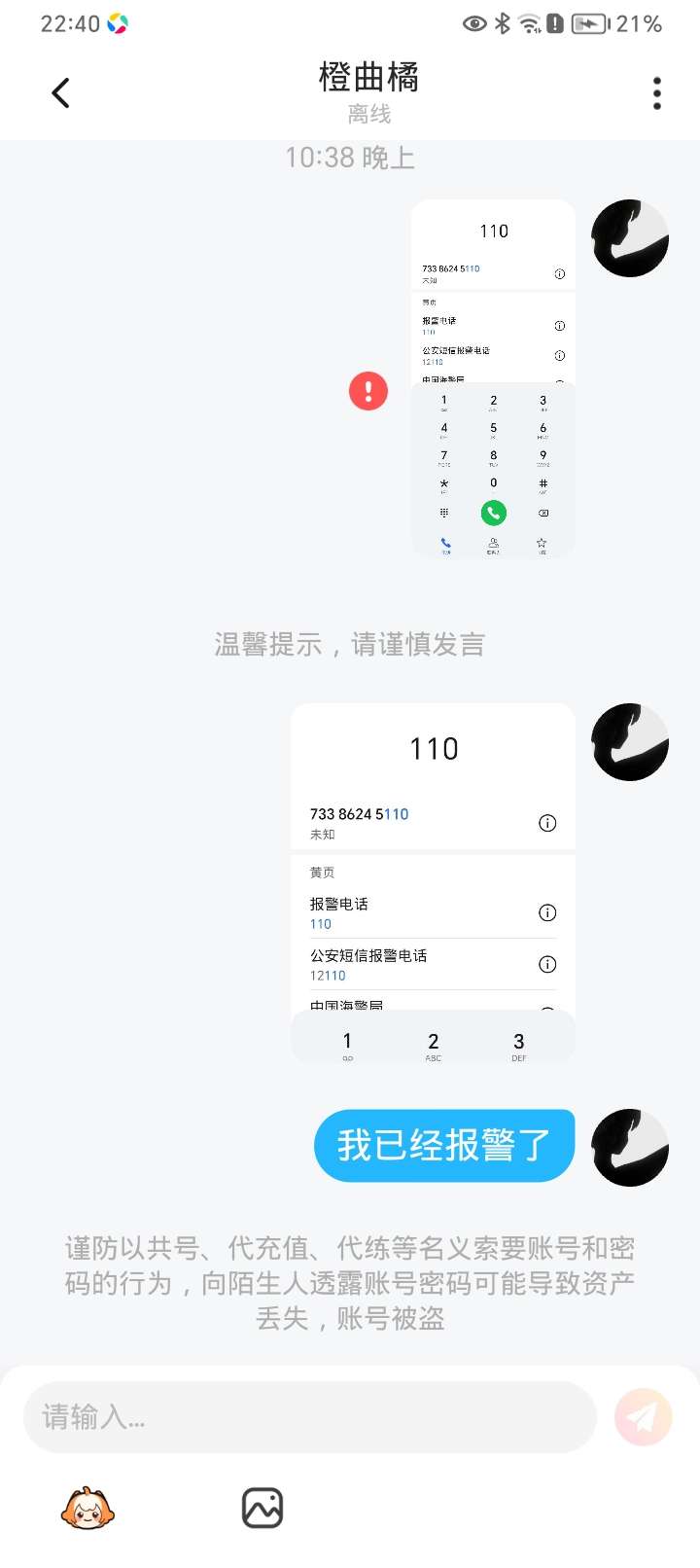 喂?摩西摩西警察叔叔有人骗钱~