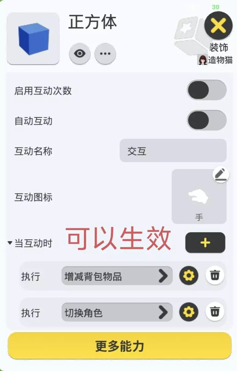 #创作问答 某些指令不生效,需要查一查是不是使用了【切换角色】指令哦~ 图一【增减背包物品】可以生效,图二的不可以!