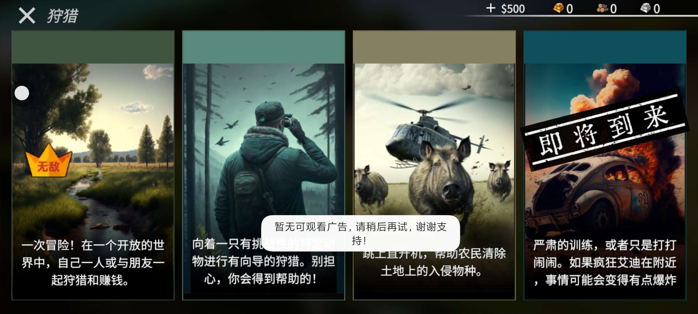 没法开始游戏呢需要播放广告开始游戏,但是暂无可观看广告呀