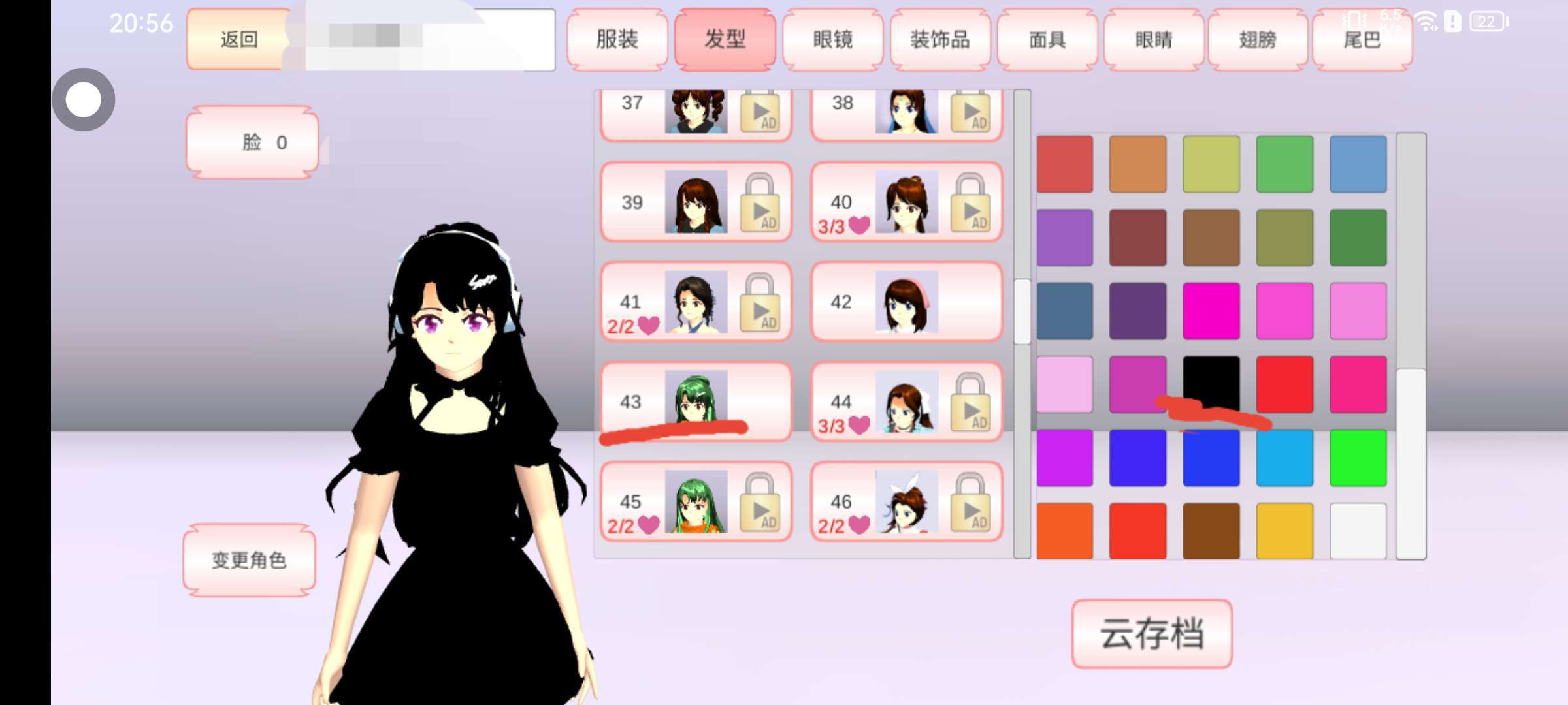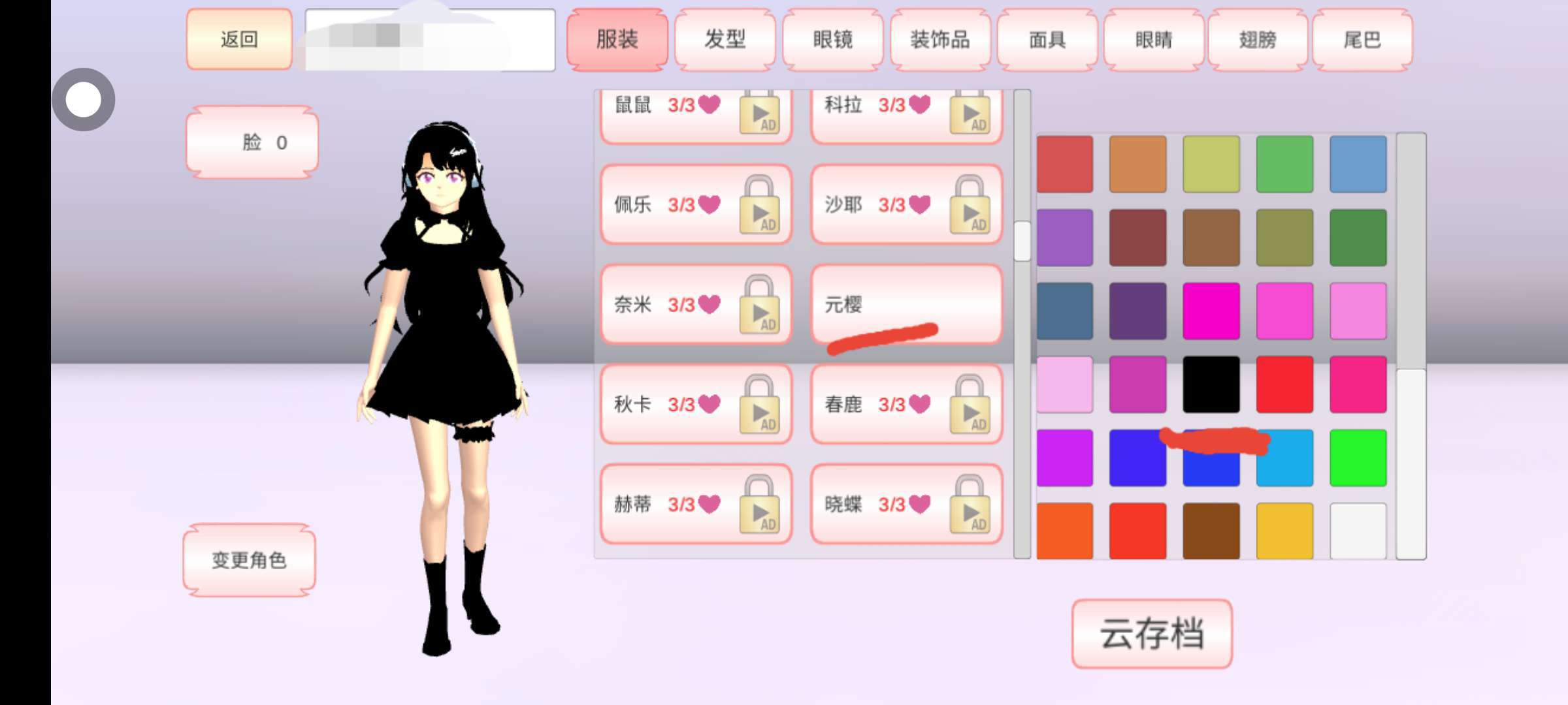 选择元樱,改成黑色( 要看三个广告)选择耳机改成白色