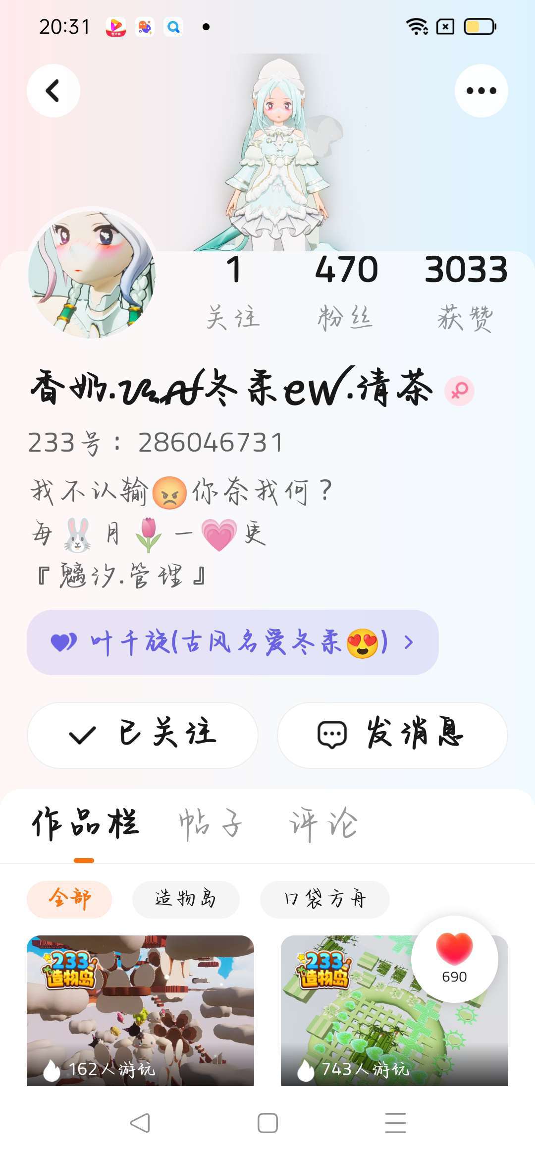 🦋大号已找回 🦚不玩大号 🌷偶尔玩 💞50粉发福利