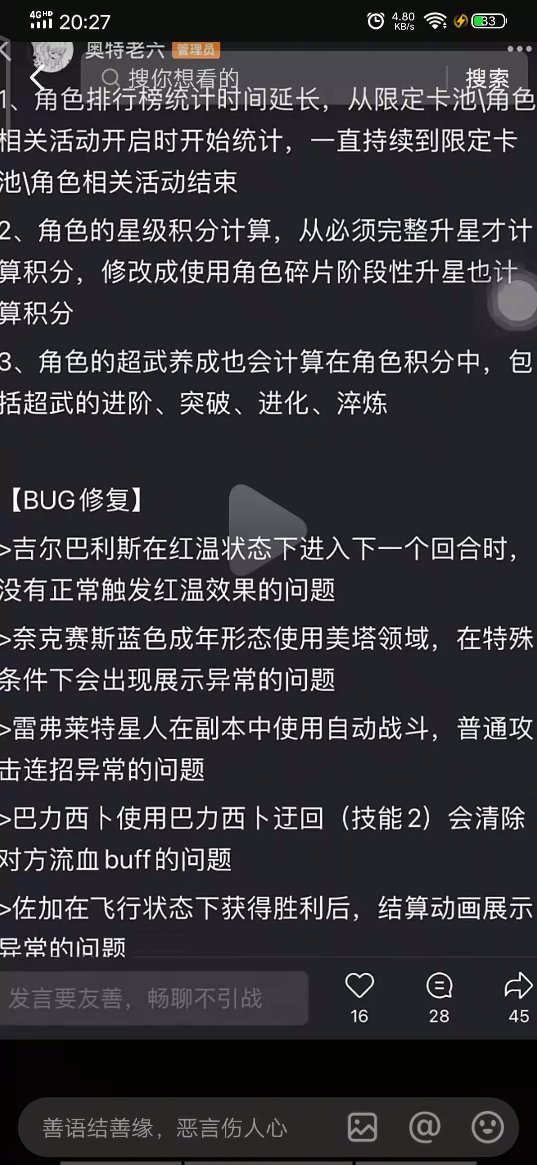 这一次更行,雷古洛斯为幻兽币获取,但这东西吧,我不用说,大家心里有事,参考赛迦那个超标怪,至于bug修复,虽说挺好的,但是多少有点不舒服,以后我还怎么直接巴尔坦接红温开大,真是服了,其中达达削了,有后摇了,达达机器人还是太强了,对吧?赛罗无限,嘻嘻。