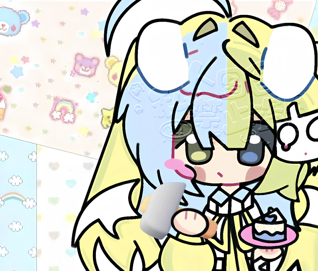 手里那个是蛋糕模型用锤子凿出来的😬一开始想画叉子后面改了