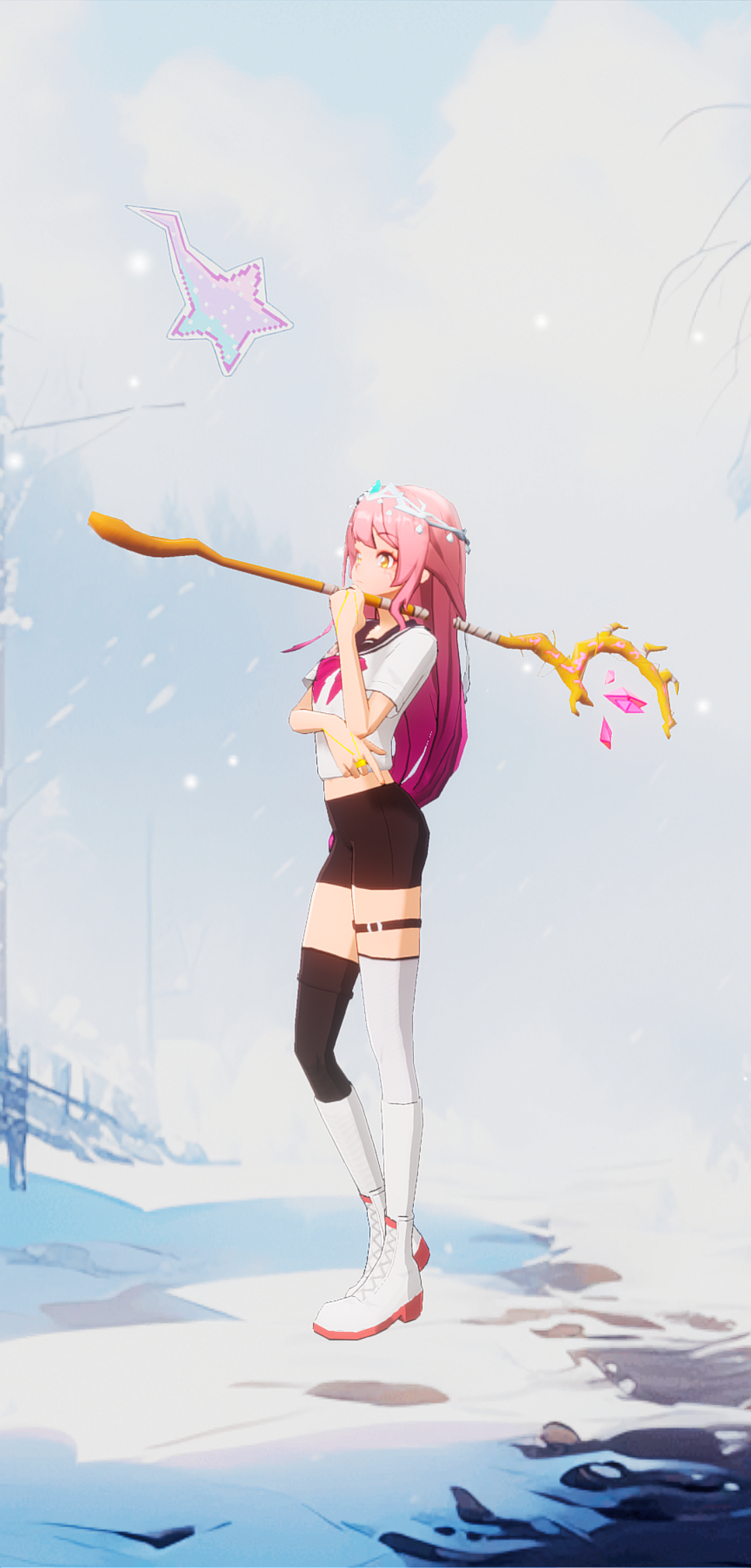 冷雪风暴粉红红少女。
