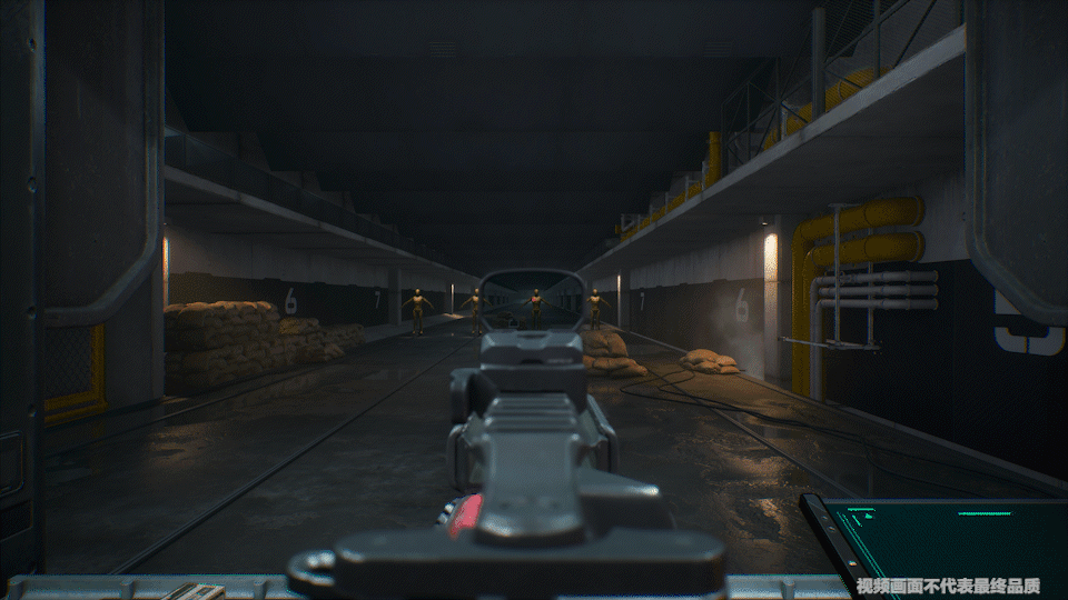 靶场配有四个窗口。1-4号窗口的初始标靶距离,从近到远模拟了不同的作战距离,方便用来测试不同优势射程武器的实际表现。