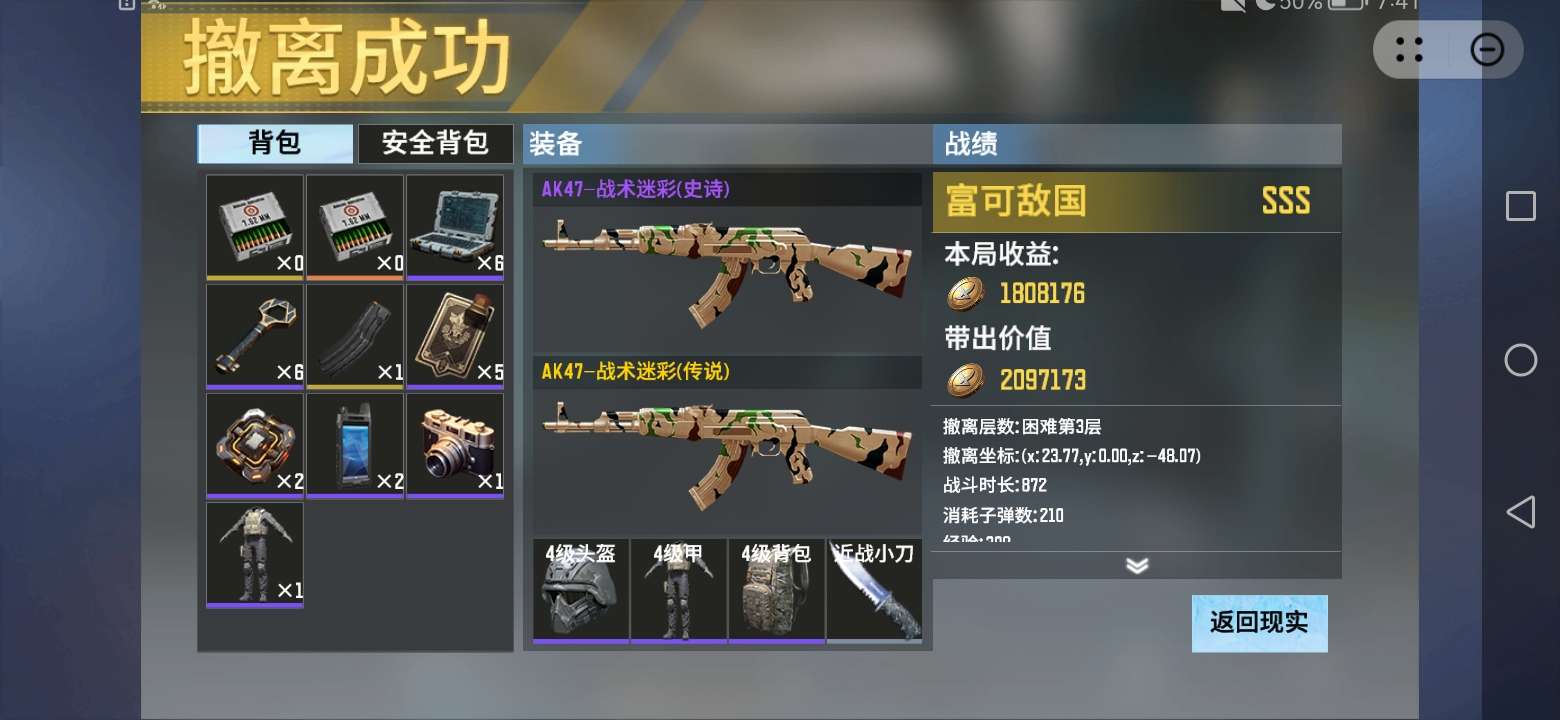 后来又玩了两把,七级包被我输掉了😫