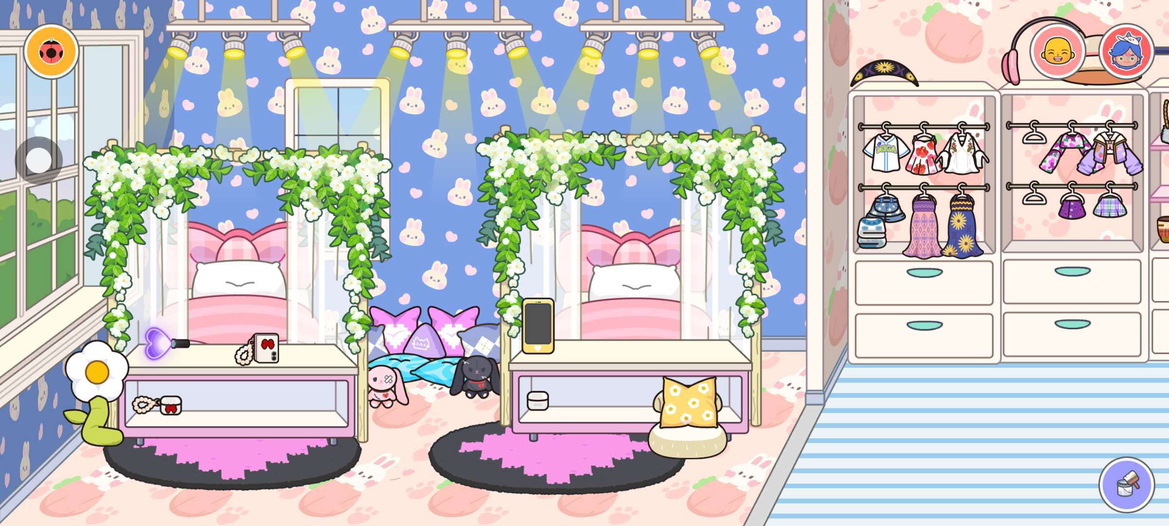 带着蓝蝴蝶结的是“我",戴着遮阳帽的是我闺 然后呢,我整体的给大家介绍了他们俩住的房子,很好看吧?