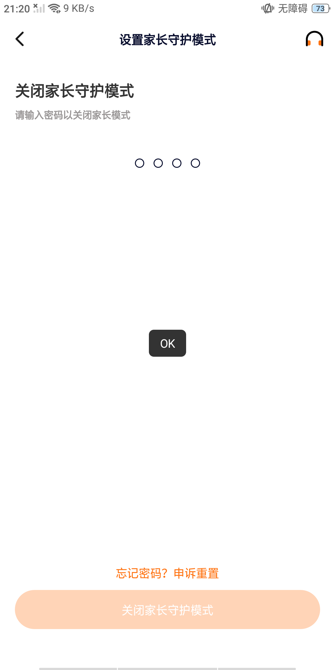 我以前在一个账号上开了家长守护模式,解除家长守护模式我输入对了下面显示OK结果还是没解除
