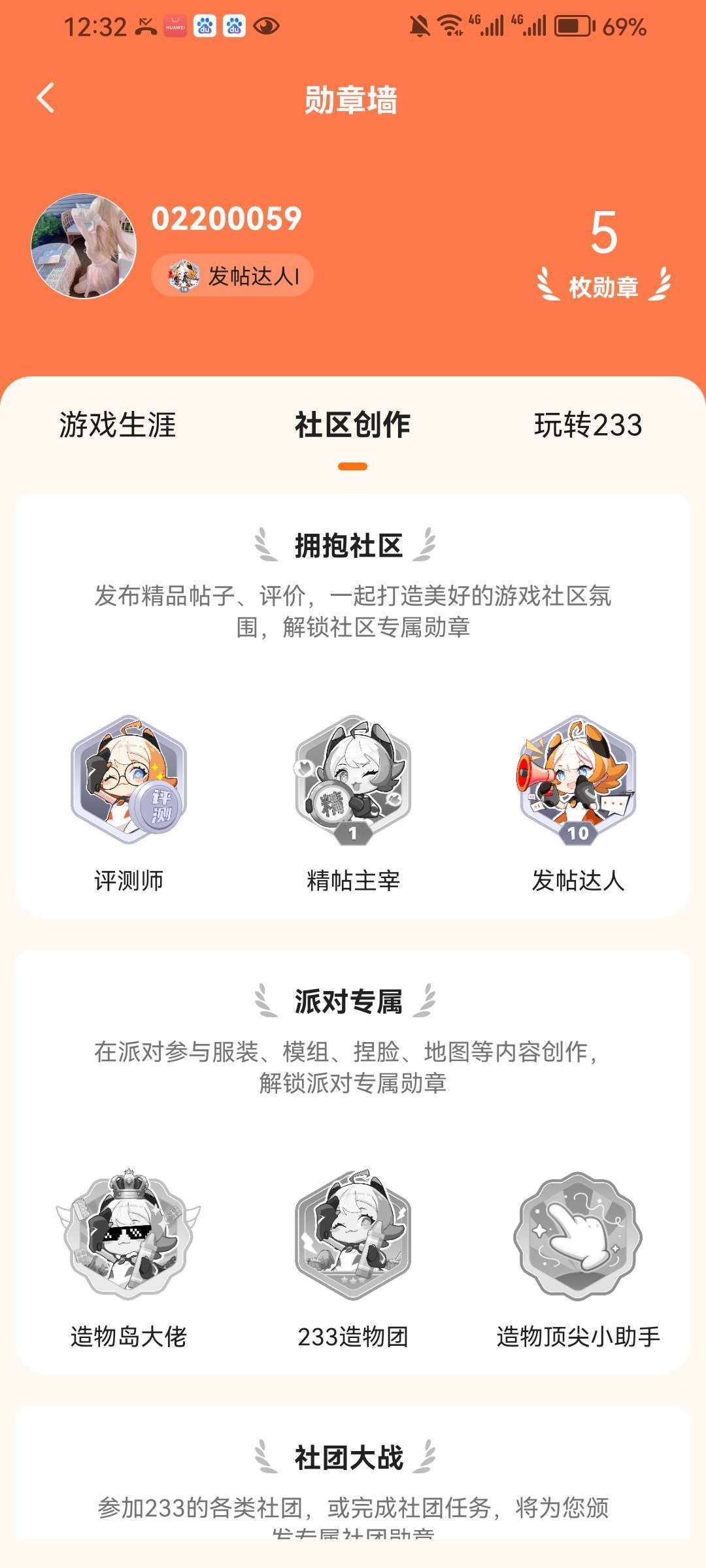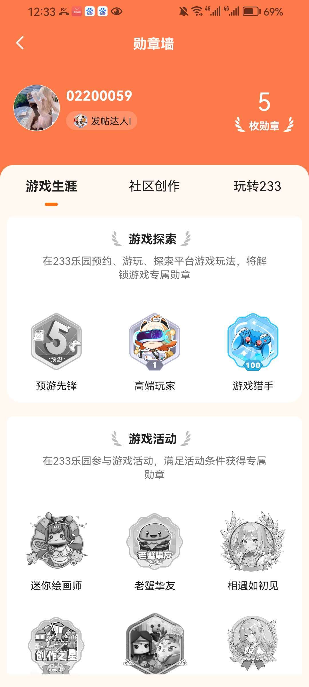 #我的勋章编年史 获得故事:玩233有一段时间了,平时会发一些打卡地图、玩游戏的帖子,也会去玩各种不同的游戏,慢慢的就有了几个徽章😀