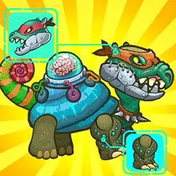 游戏为回合制游戏,游戏核心点为升级变异,玩家可以用能量为自己的龟龟升级或者变异,每次升级都可以增加恐龙的生命值,攻击力,防御力。每次变异都会将一个属性全面强化,并且获得更多的技能。玩家需要将龟龟升到一定的等级,去挑战关卡中的boss,来取得胜利。
