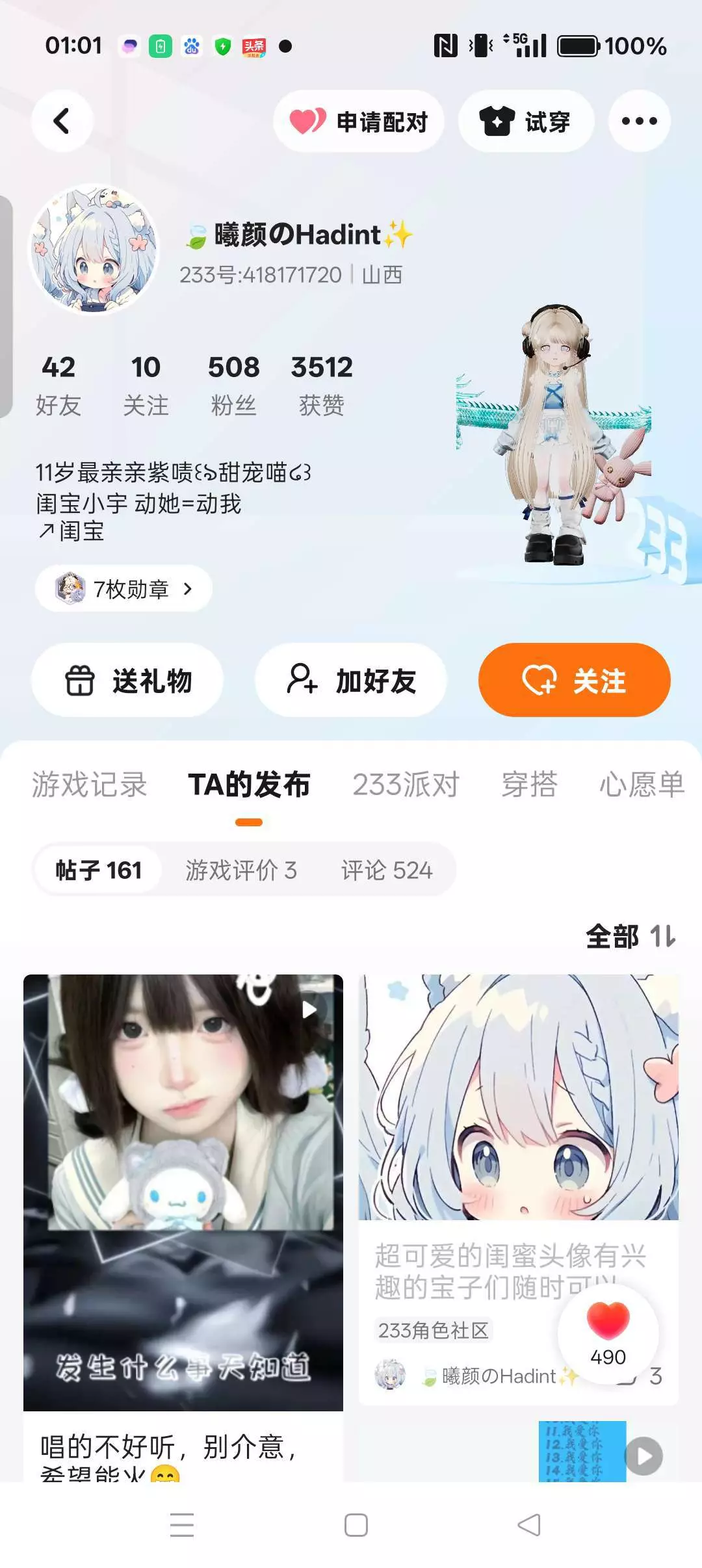 不是吧,宝子,你都看到这了,给他个关注吧!他比我玩的久(号),但是她涨粉的速度真的很慢啊,所以看到这个,你给她点个关注吧(白嫖也行,就当报喜了,沾沾喜气)祝各位没错100粉,的破100粉