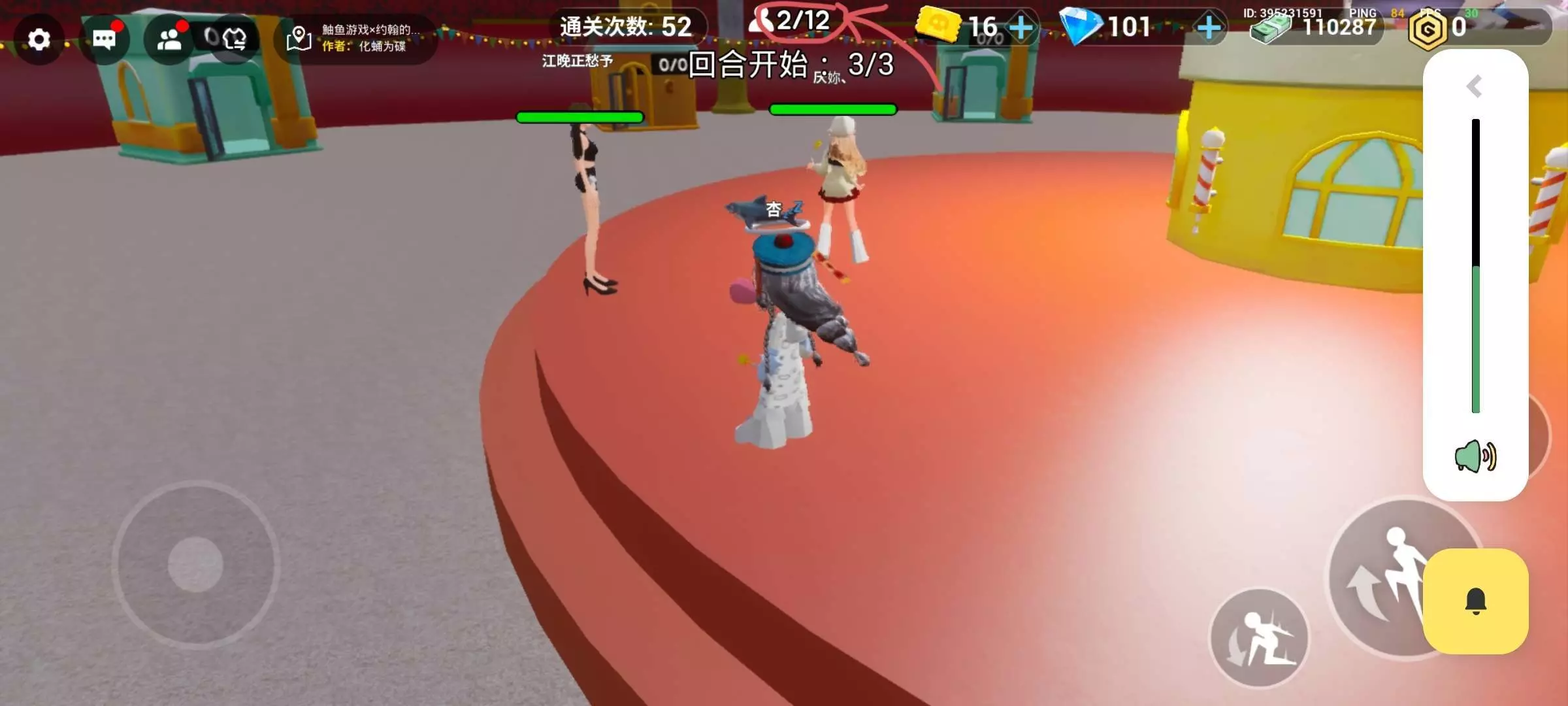 不是显示两人吗?咋三人?而且他俩的血条咋回事?不是高塔堆人的地图吗?为啥有跳绳比赛的地图?