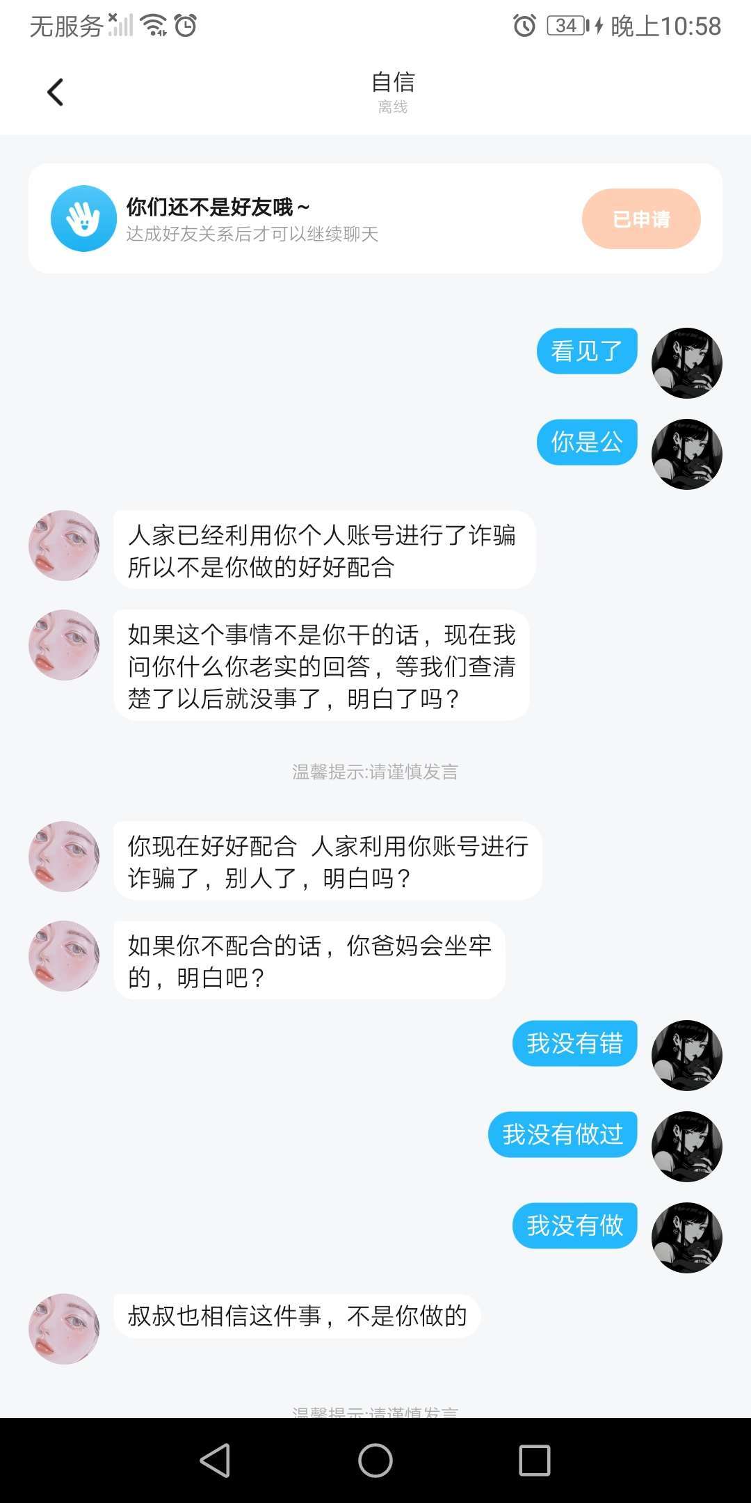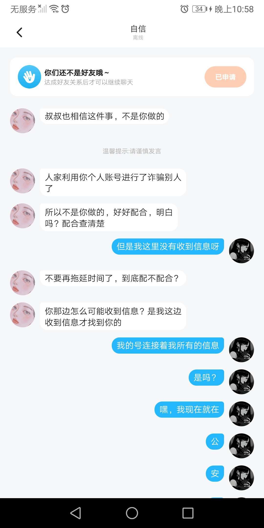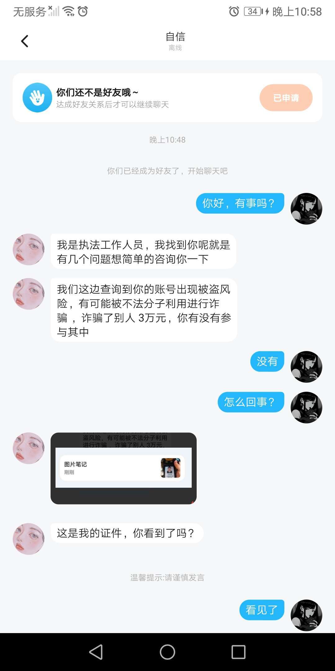 这是怎么回事?跟我说这些话过后就把我删了,这人又是谁,说自己是,