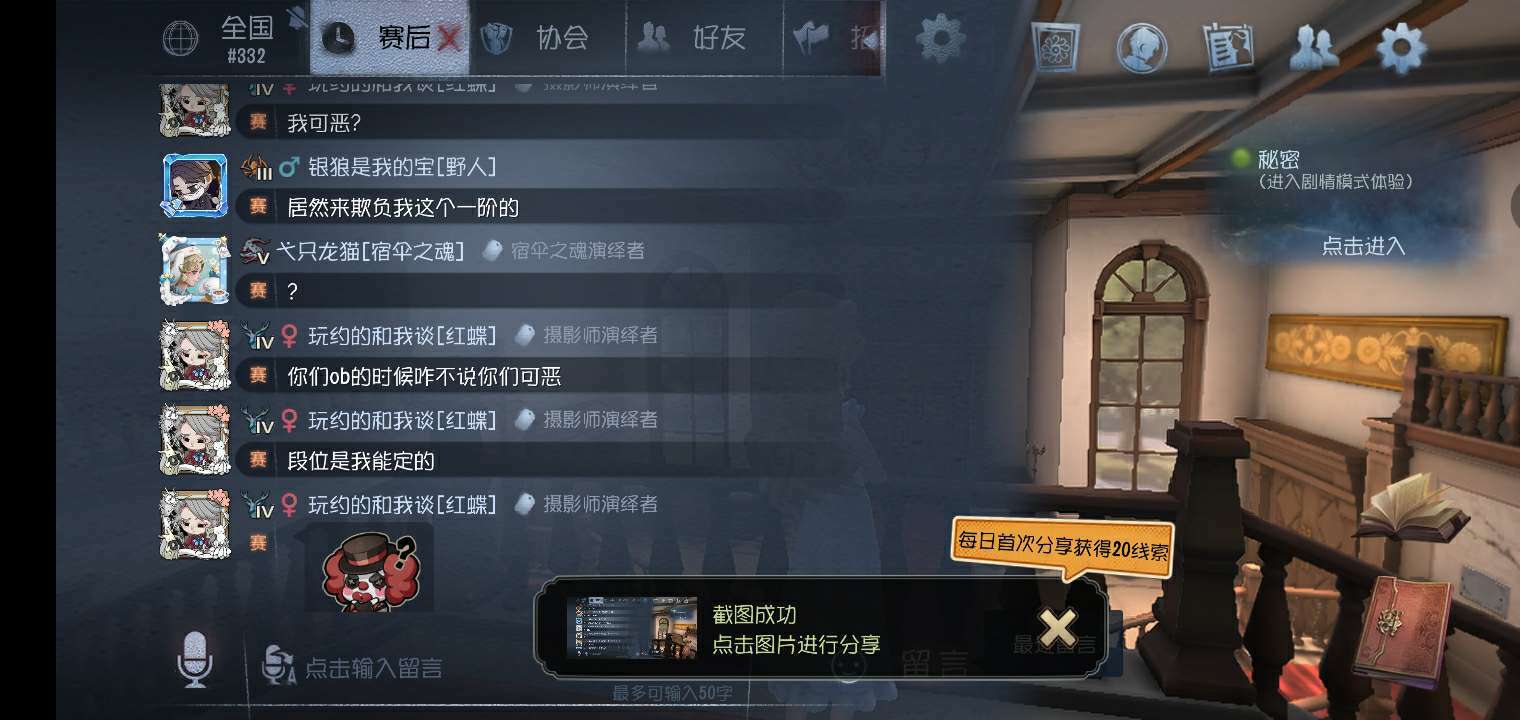 有一次玩儿联合狩猎的赛后