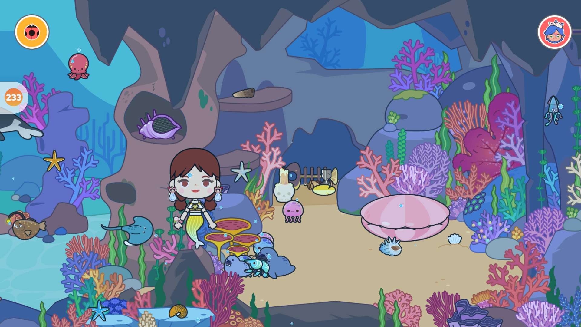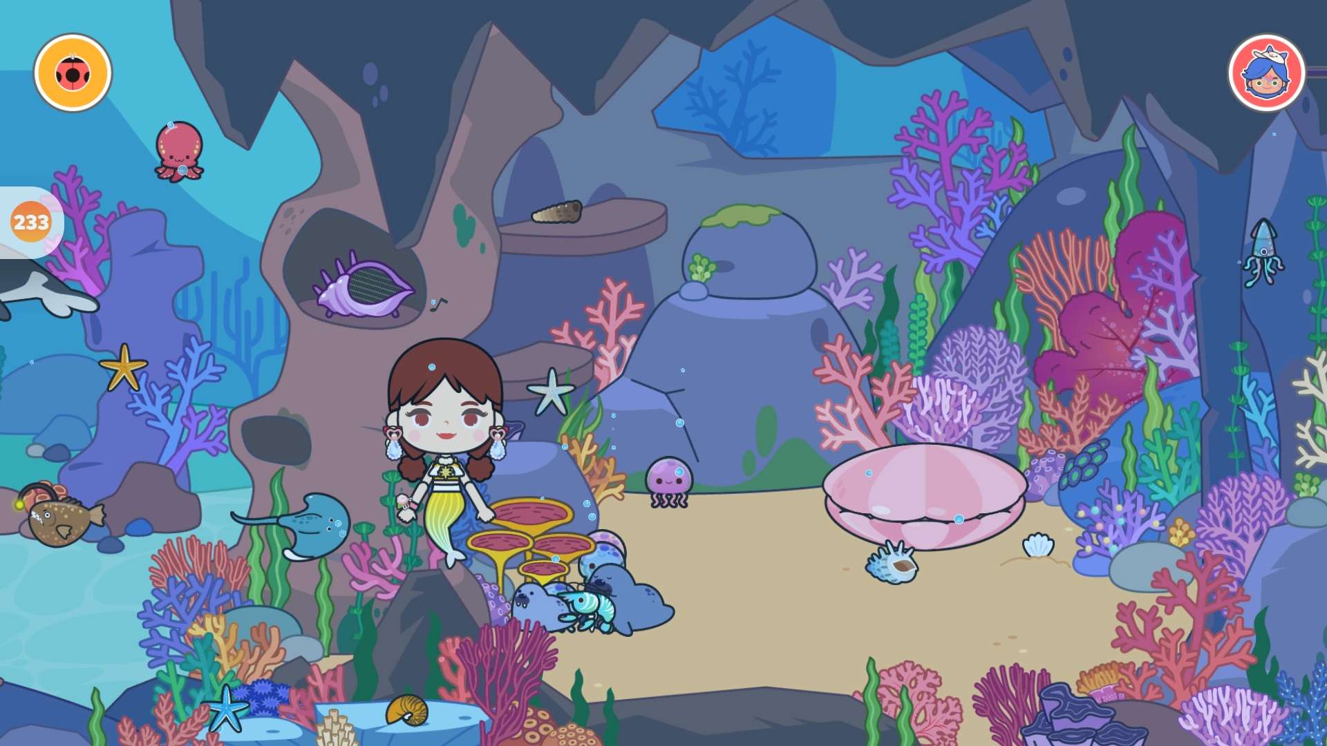 那个紫水母背后是一块很大的石头,如果大家点一下就会发现…
