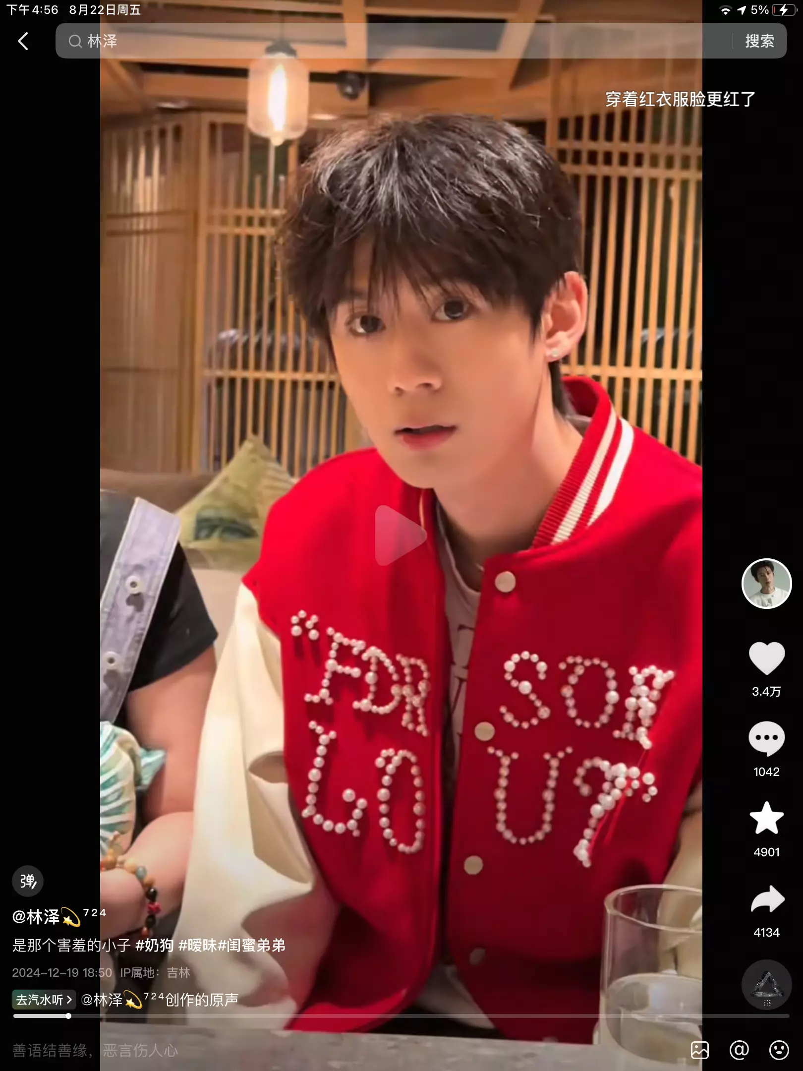当有人问我认识林泽你后悔吗? 而我会肯定的回答他/她:认识林泽我并不后悔! 是他给我带来了欢笑,是他给我的生活填加了快乐! 虽然有时候我因为学习而错过了他很多的直播,也因为自己老说错话感到难过! 现在我,并不要变成别人眼中完美的人,我只要自己开心就好,我管别人怎么看我✨ 希望林泽一路长虹,天天开心🥳! 😎😎😎😎