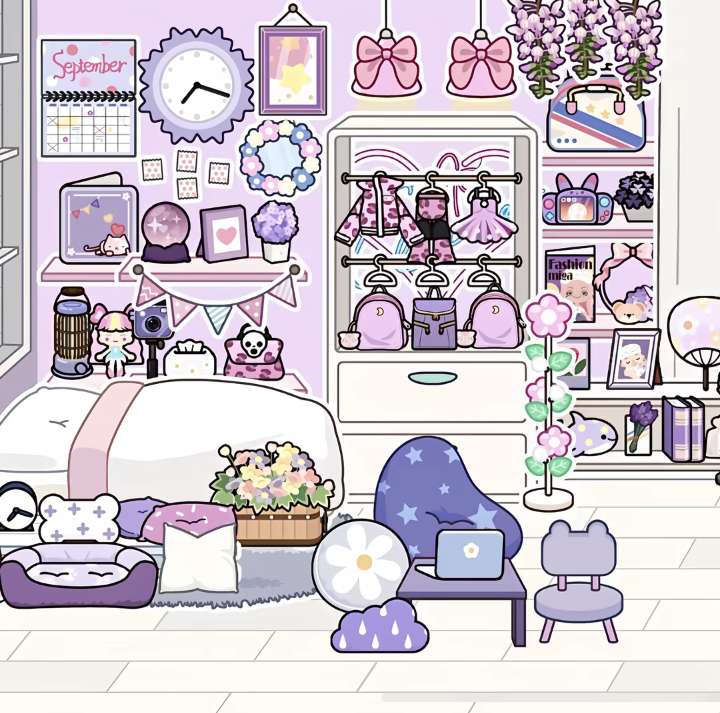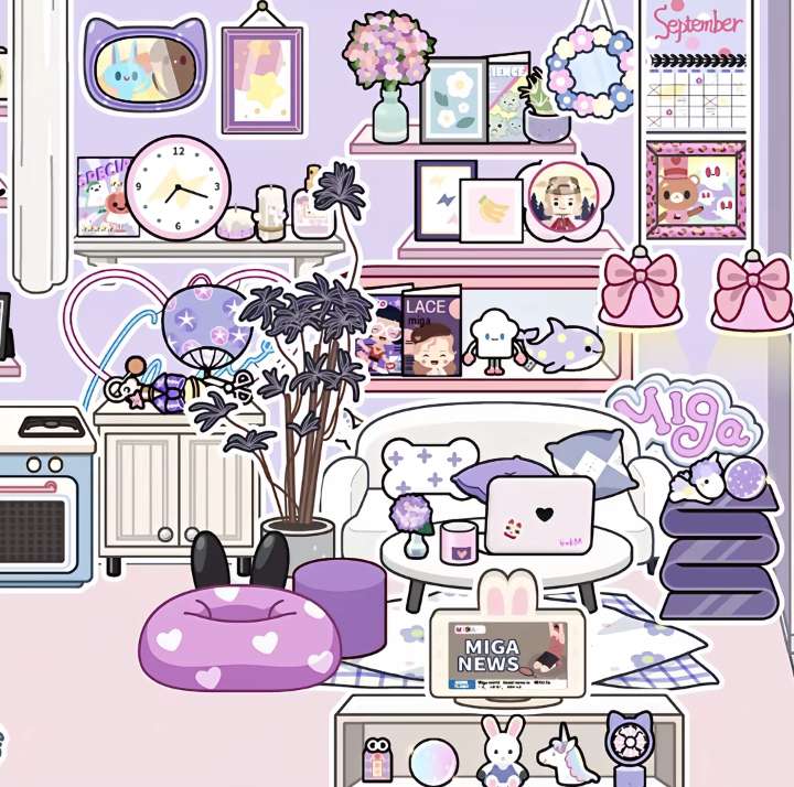 米加紫色系房间布置哟 选出来哒紫色系的物品好少!但是我还是出了 #米加小镇世界 #米加小镇 #米