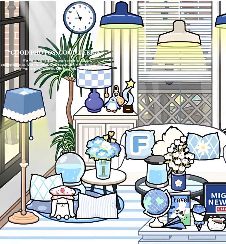 米加|🧊蓝色🛋️客厅卧室布置 小窝🛋️卧室布置来啦~ #米加小镇 #米加小镇世界 #米加小镇日