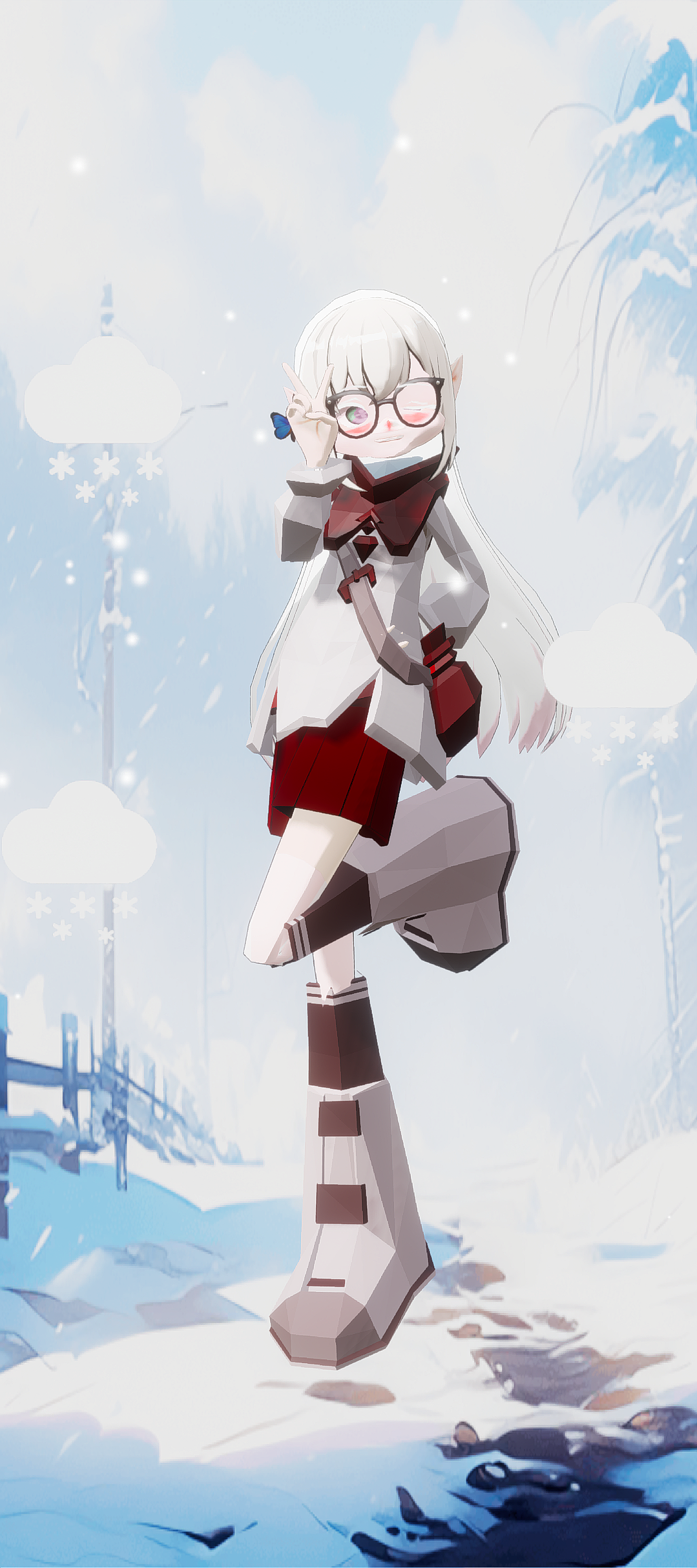 感觉这身衣服很适合在冬天的场景拍,所以我在冬天的场景拍了
