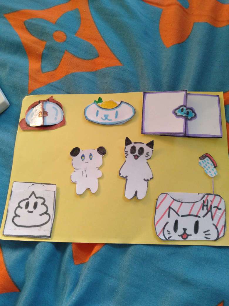 做盲盒过程:1画出图画2裁剪3画出背面也裁剪4用剪刀剪出放的东西5把东西放进去,用双面胶封住✔完成
