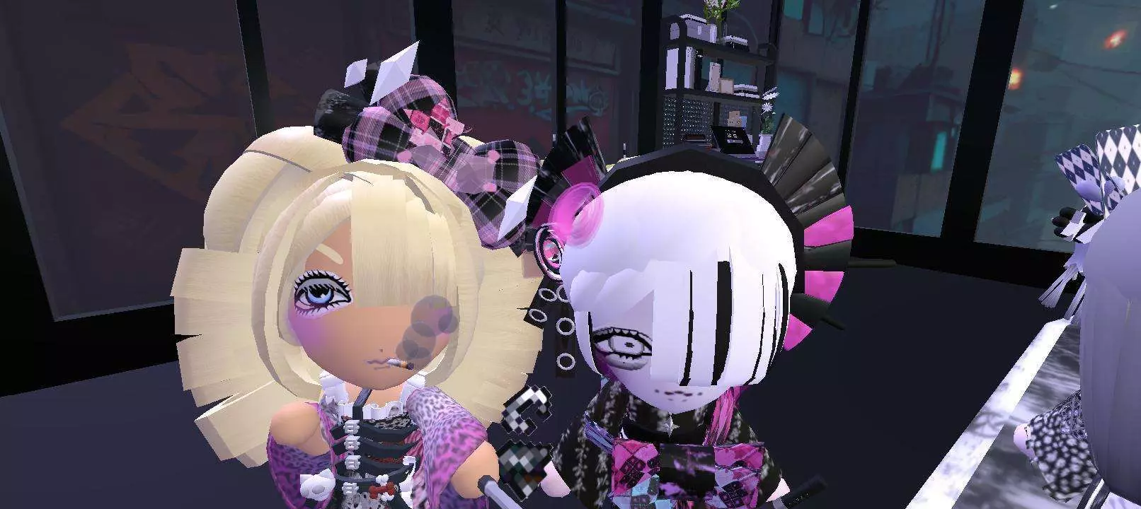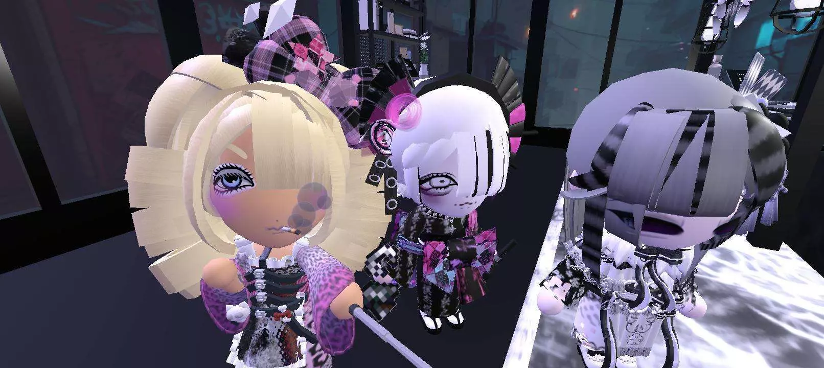 遇到了很酷的玩家。我们一起合了影,可惜当时的站位有些乱,没能把她们都拍好😚