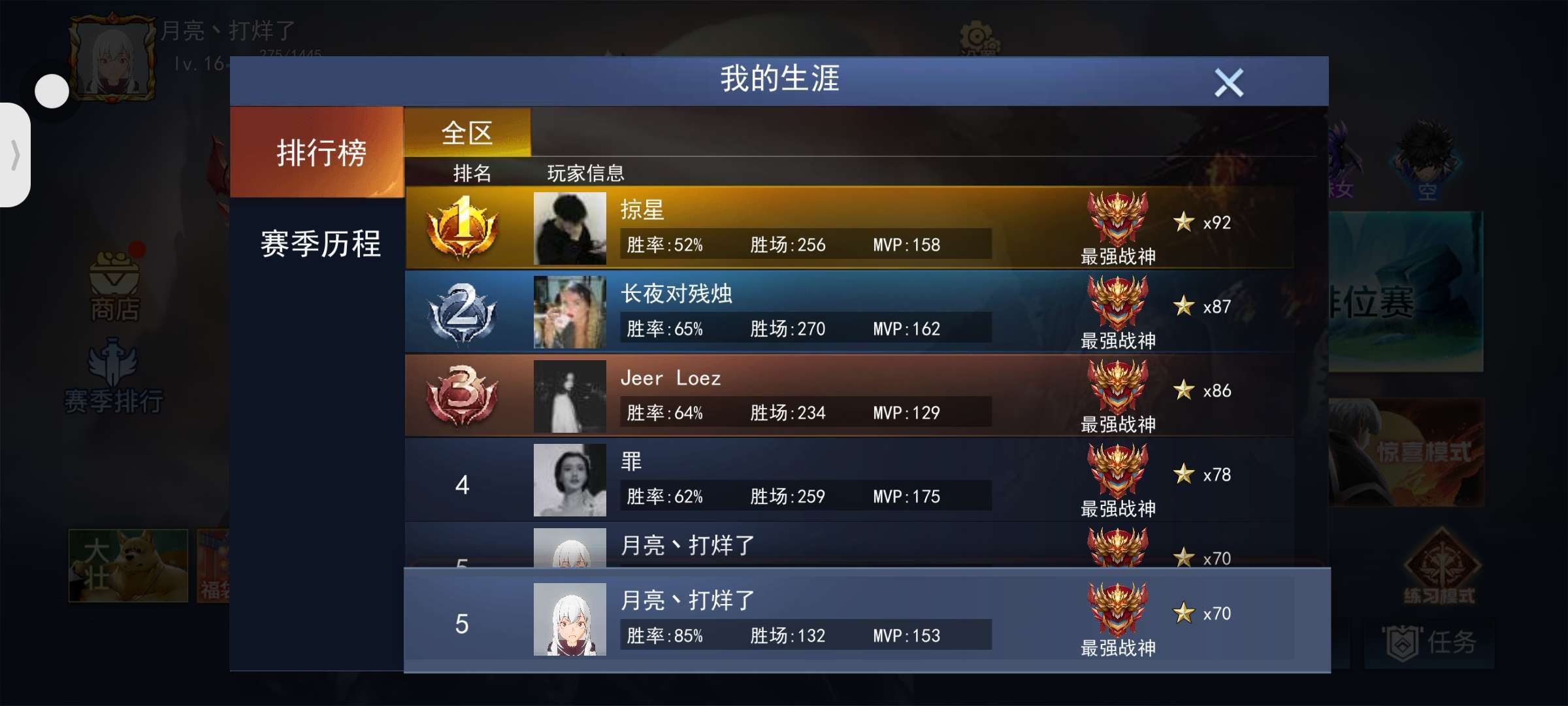 还差80多星追上,就是推塔,杀人是什么?我的眼里只有塔。