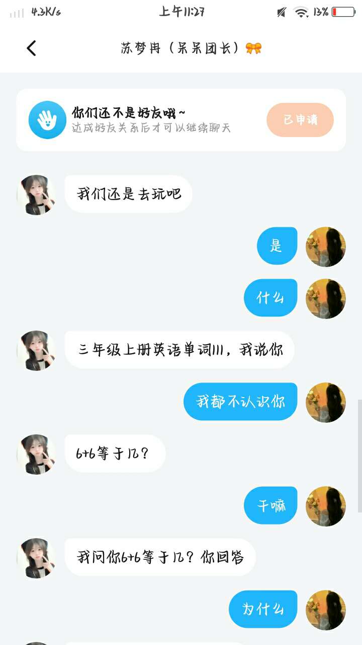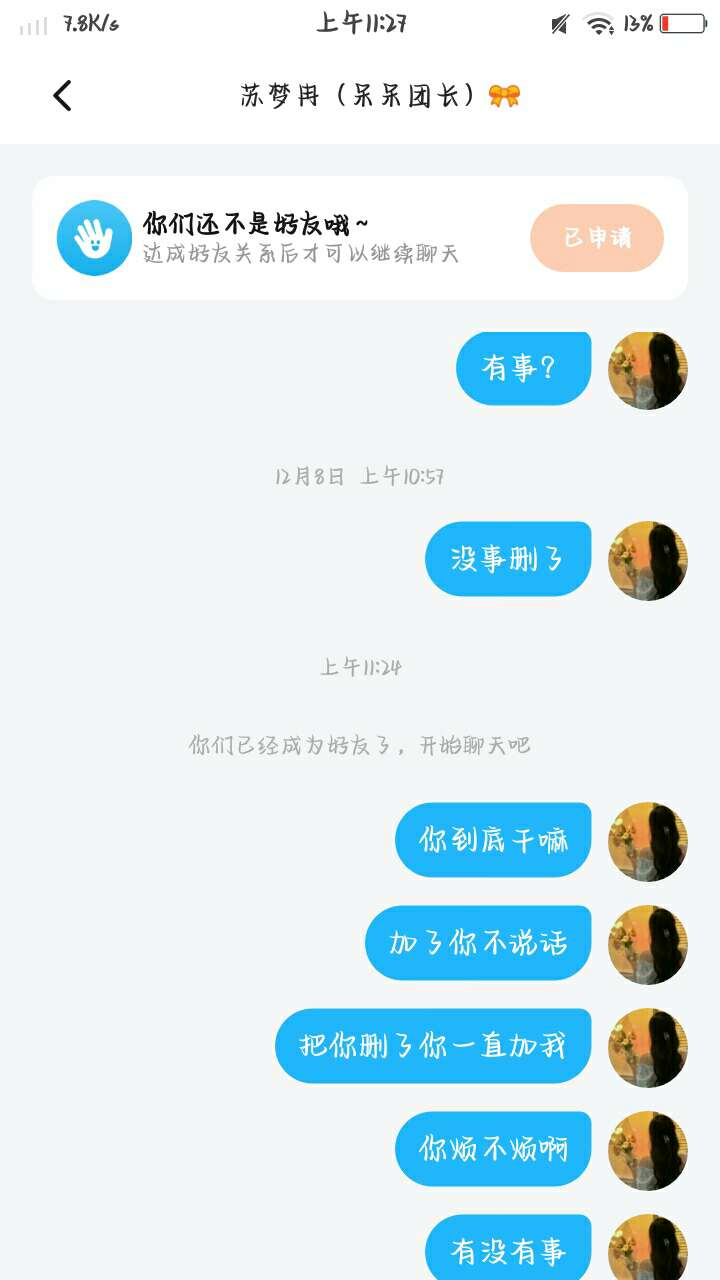 然后问完这些问题还把我删了真的有问题脑子给驴踢了吗,想在我这找存在感