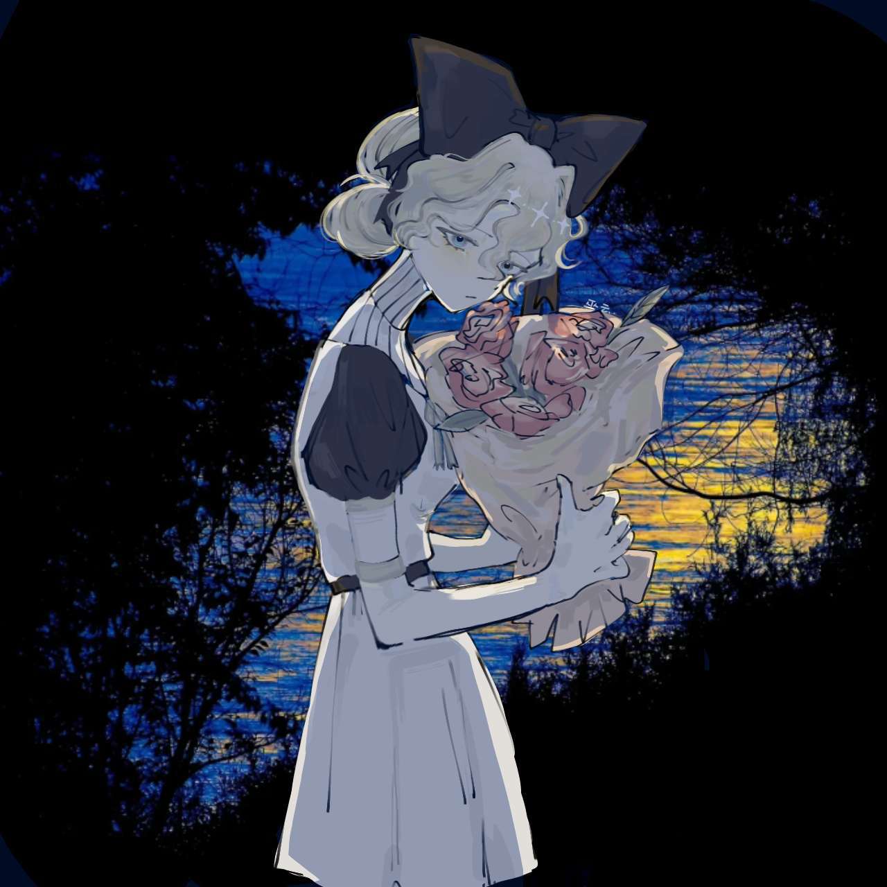 想了好久的设定,还是在犹豫到底加不加(小声)。。。区别:姐姐(尤维拉)喜欢把头发盘的高一点,妹妹(斯麦尔)喜欢把头发盘的低一点.姐姐高一点。💥