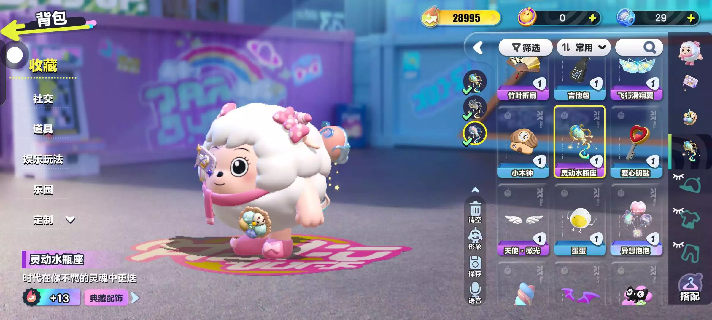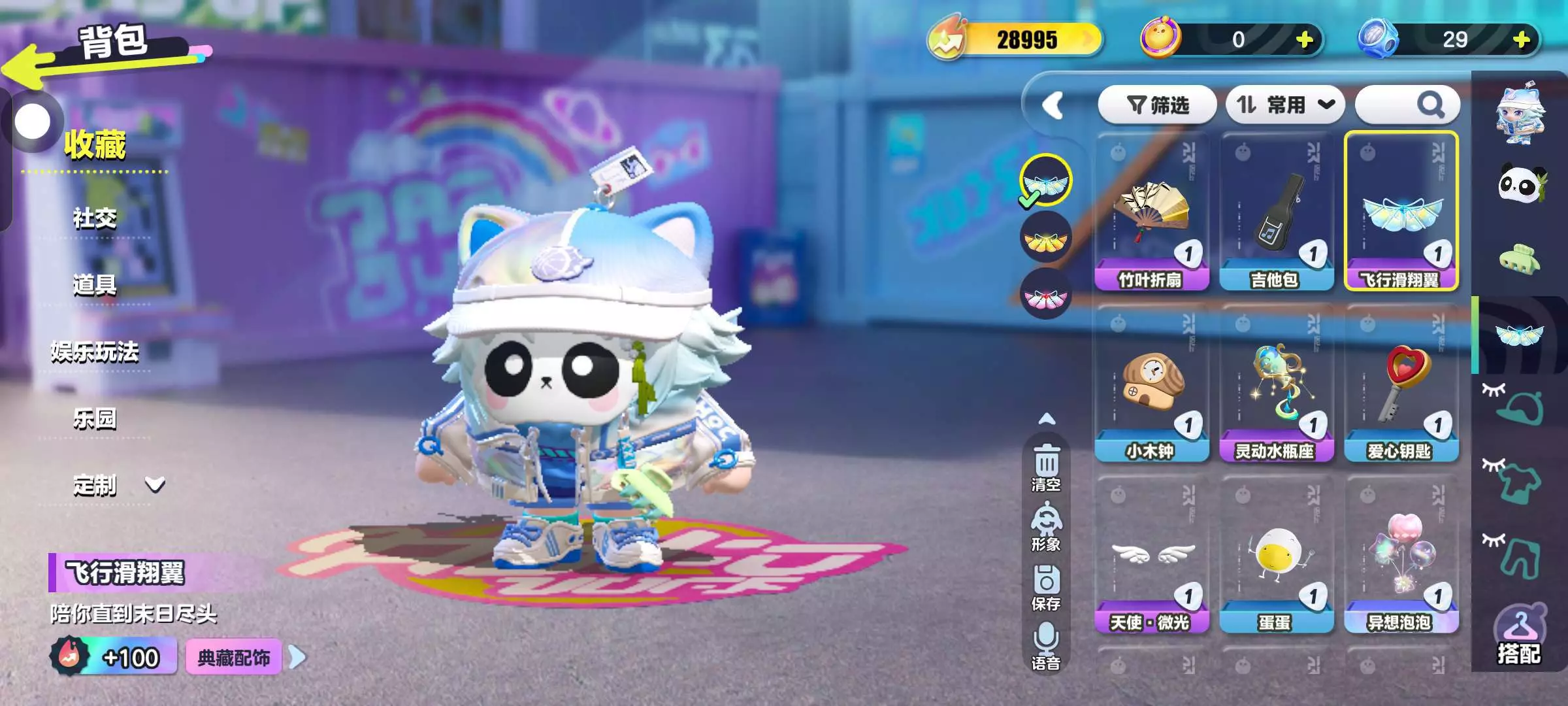 #蛋仔暖暖搭配赛 最推荐第二幅图呀。那个篮球小子是有免费领取的彩虹币抽到的(每周都做任务领取6个彩虹币);然后这个熊猫面饰是今天用纤维兑换的,因为官方把它返场了;这个腰饰小夹子,也是狂欢星期六活动里的。背饰的小扇子也是今天用纤维兑换返场的#。