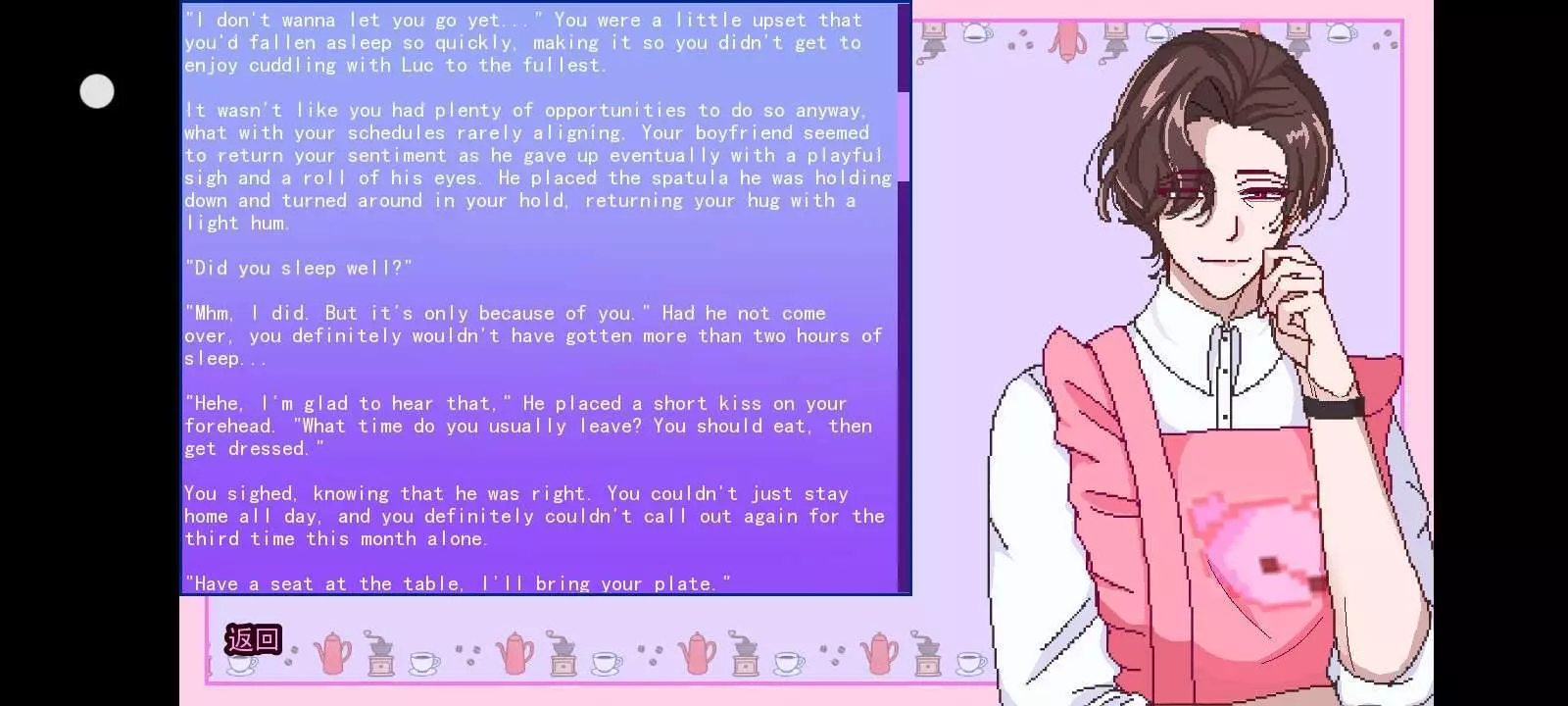 “你这是把我当小公主宠啦,卢克。” 他回给你一个笑容,往自己的杯子里加糖。