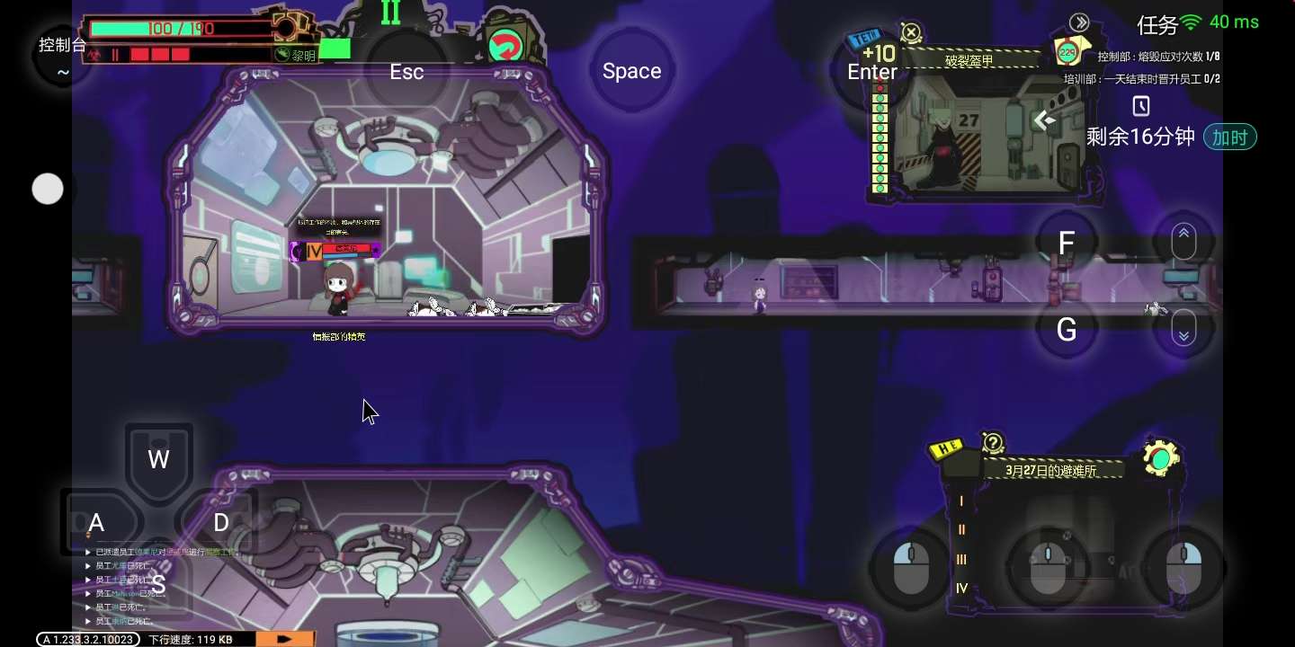 第16天能出来的异想体全出来了,员工贾斯丁没了。安保部打得只剩一个,并且恐慌,小鸟来帮他恢复理智,他把小鸟打了😅,后面重开16天