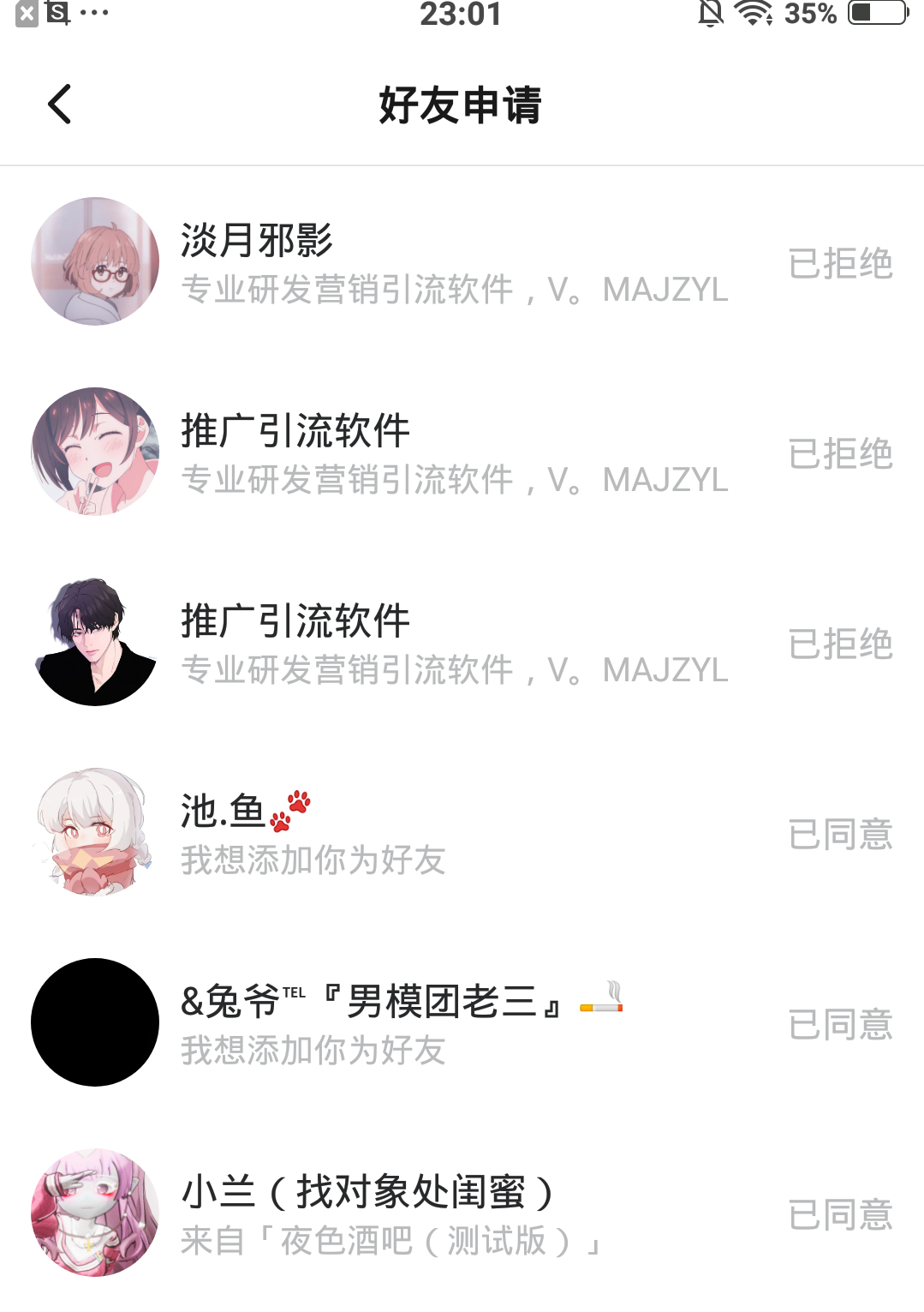请问这三个人加我,有事吗?