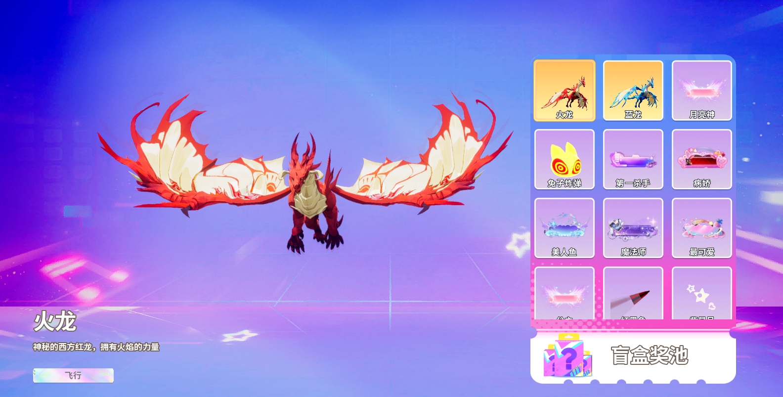 运盲盒作为常驻类型的盲盒,里面的种类可以说是很丰富多样了种族外观、头顶外观、宠物、动作、拖尾、盲盒奖券等应有尽有当然,其中最厉害的当属龙族了,威风凛凛,雄姿英发,看起来就超级厉害的样子,小助手我很是喜欢【幸运盲盒】抽取规则:1.每次抽取幸运盲盒需要消耗奇幻币,单抽消耗奇幻币99,五连抽消耗奇幻币488;2.每次抽取可获得2个盲盒碎片奖励,抽到重复永久道具会自动转化为相应数量的盲盒碎片;3.盲盒碎片可在碎片商城中兑换道具;4.100抽内必出金色永久道具(含100抽)。