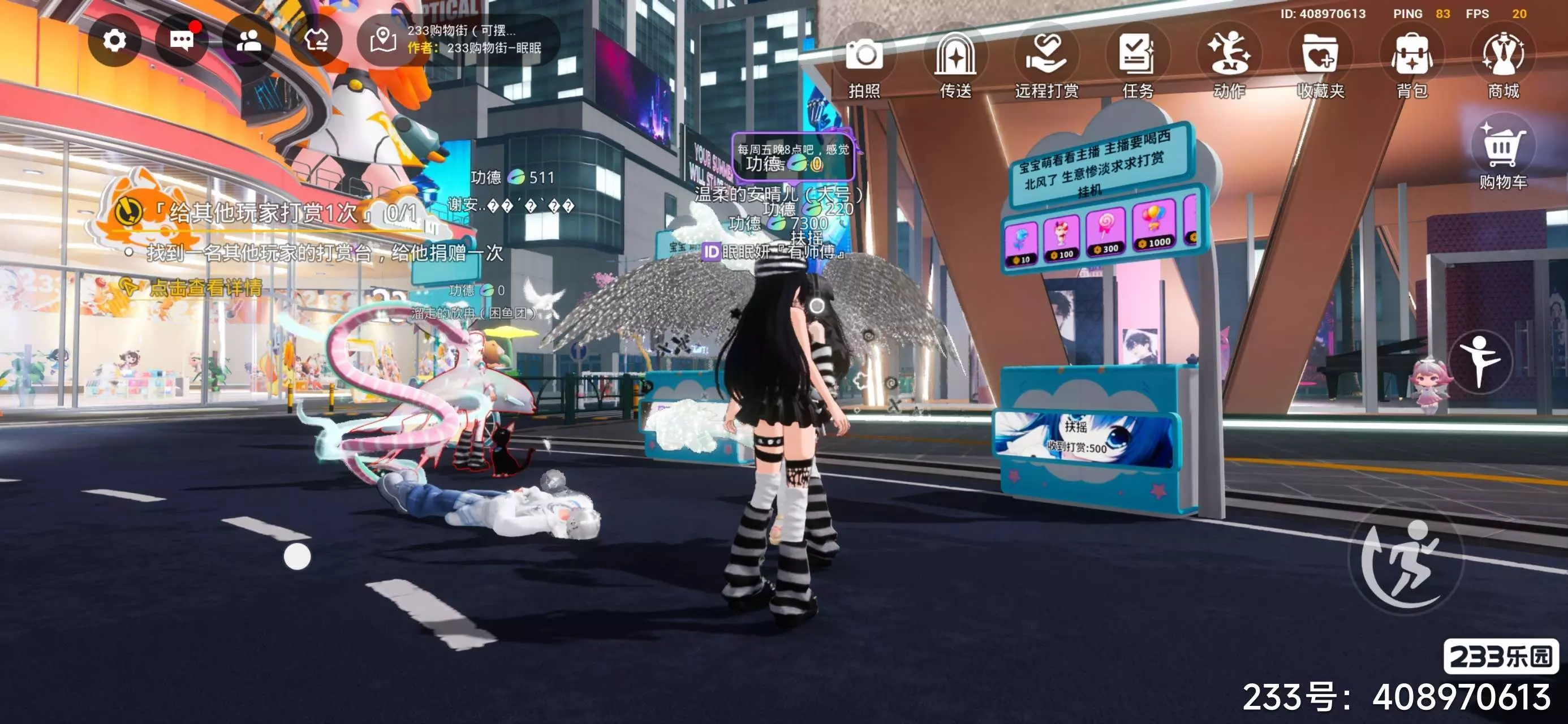 可以自己打造属于自己的打赏台,还有很多的商铺可以参观;在游戏里做任务,获得经验值,还可以总换商城里面的衣服,拍照也很出片。