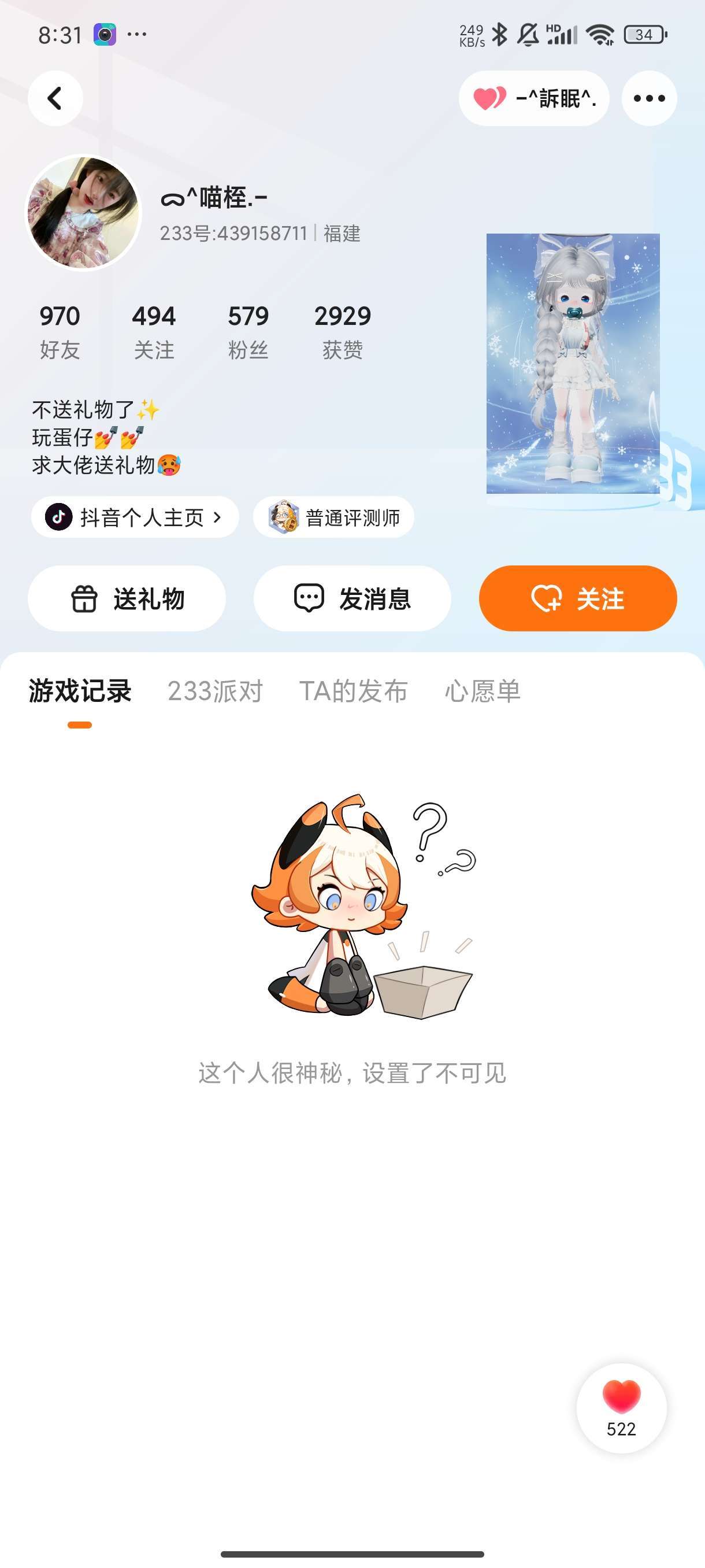 这个大佬他人特别好,咋说呢?就是呢你可以选一个心愿单让他给你送,他很爽快,他这个人,可以去找他,是呢不能要太贵的