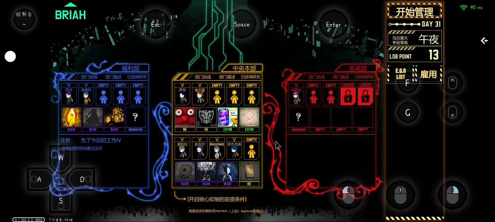 《脑叶公司》是由Project Moon制作并发行的一款管理怪物的模拟游戏。游戏的灵感来源于那些在小说,游戏和电影中登场的怪物们,例如《SCP基金会》,《林中小屋》,《第十三号仓库》等等。 在游戏中,您将扮演一位怪物管理公司的主管。这些怪物能够生产出一种新型的能源,而您的职责就是在尽可能避免员工损失的前提下收集这些能源。在游戏中,您可以不断解锁新的部门,研发新的科技,并遇见形形色色的怪诞生物们——这意味着您将在紧张与恐怖的气氛中进行游戏。