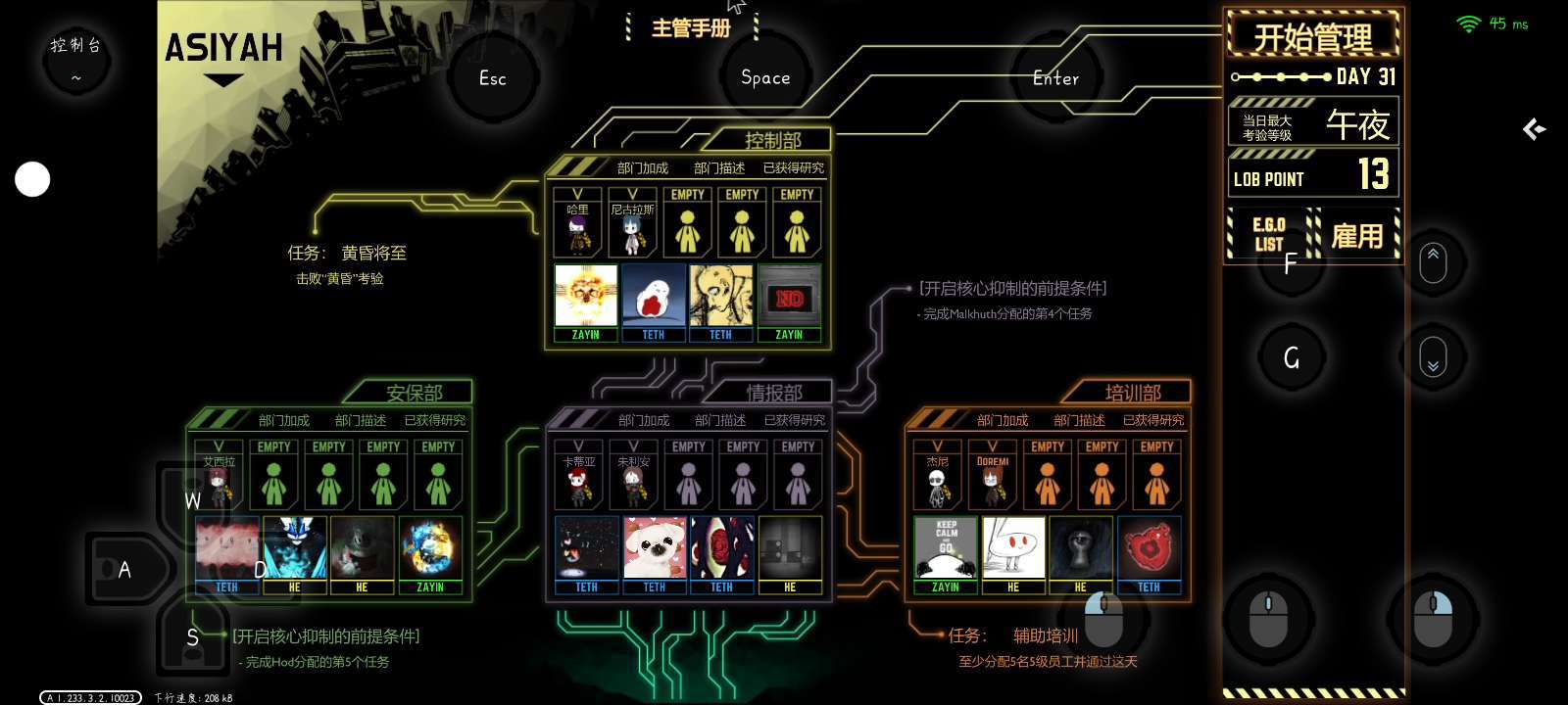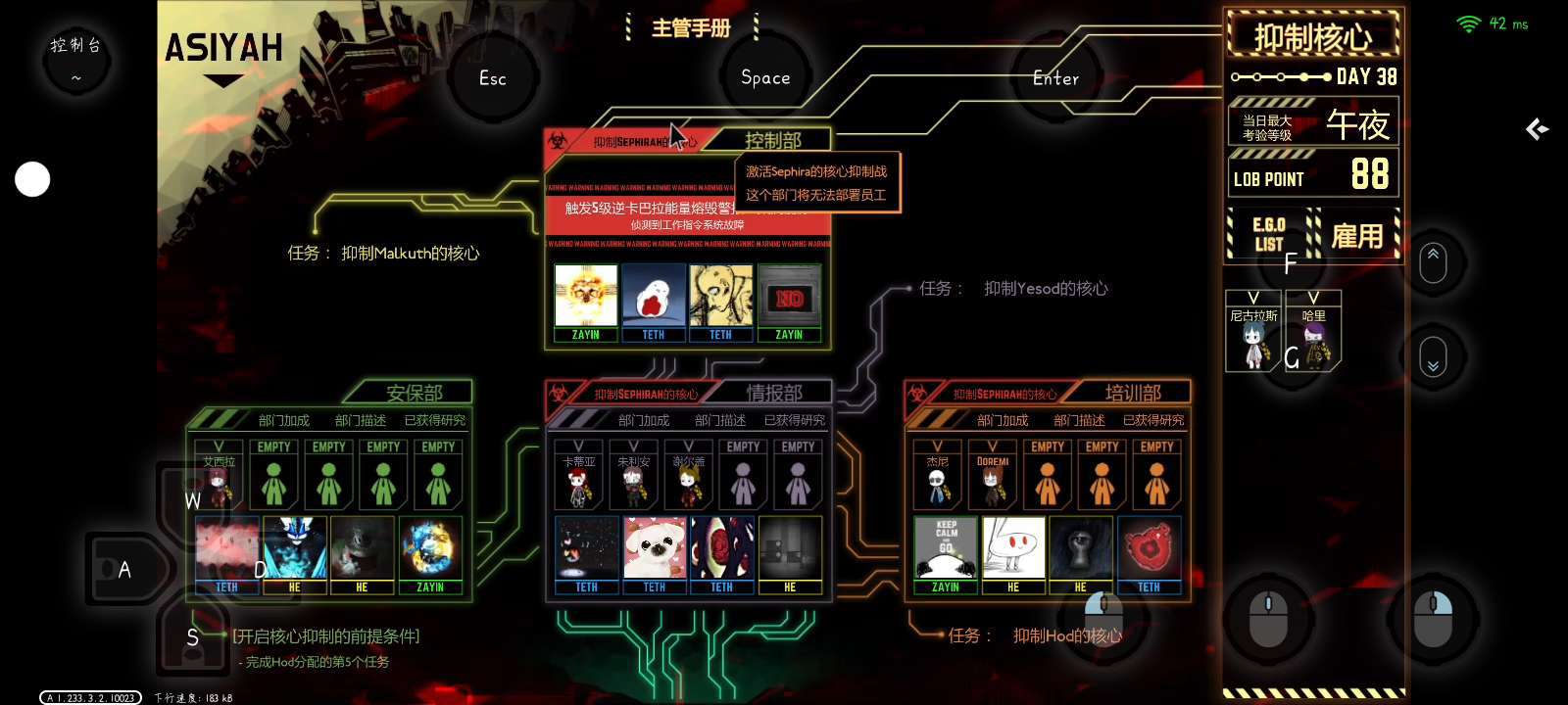 地狱绘图2,三级警报,乐团把惩戒部灭了,尸山三球,爱妈出逃,终末鸟(还有俩员工在培训部电梯没事)