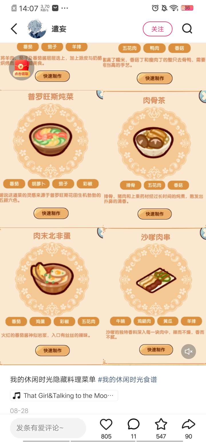 我的休闲时光兑换码和菜谱来了