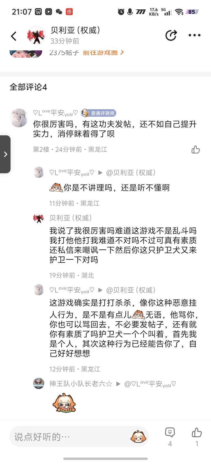 剧情的反转来了这乌龟一直放技能丢我没理他还在这放帮外人打自己一个公会的还发圈丢人还有你还有你这个2600多的每次正面被我打死就说是我偷录屏发出来了你看看你搞不搞笑呢
