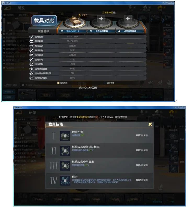 耐久度加1000 ,武器精准加2% (更适合远距离作战 以及双机枪载具 )