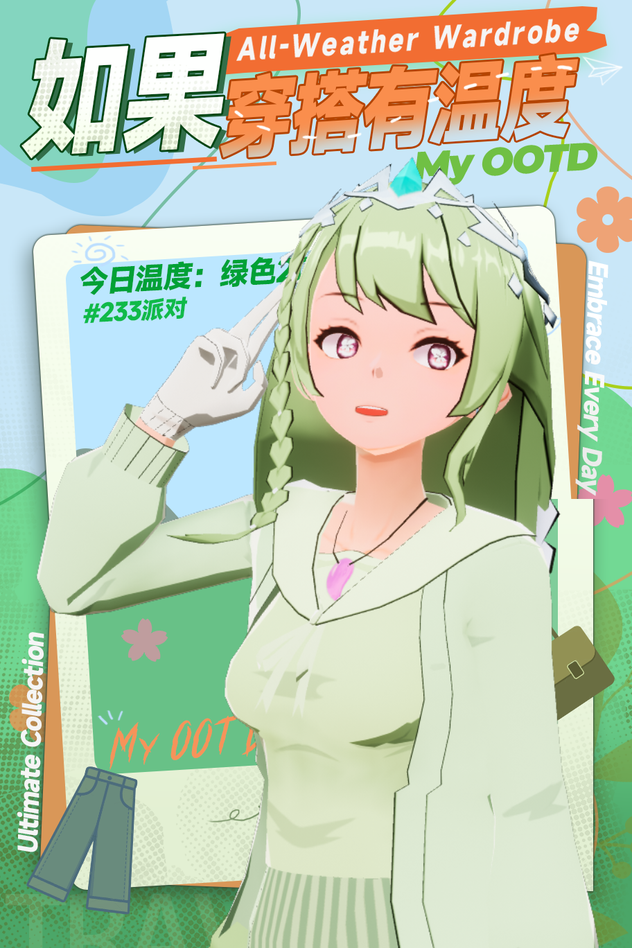 绿绿的穿搭,元气满满的一天。
