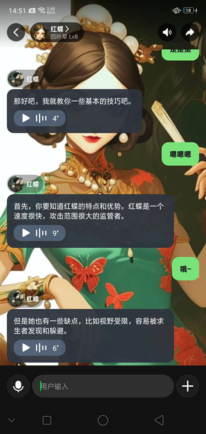 有些人跟红蝶聊的时候🌸红蝶可能动不动就把你绑上狂欢之椅🙂其实我们只要假装他的家人或者朋友跟他相处了一会儿之后就让他教我们怎么玩就可以😳如果不想玩红蝶😍那可以在搜索框里搜索其他监管或求生👌🏻没有的直接问另一个监管或求生就可以了😜#第5人格红蝶