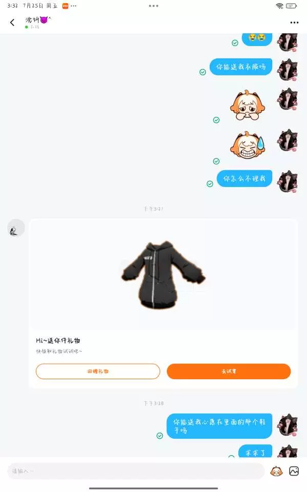 今天他要送我衣服
