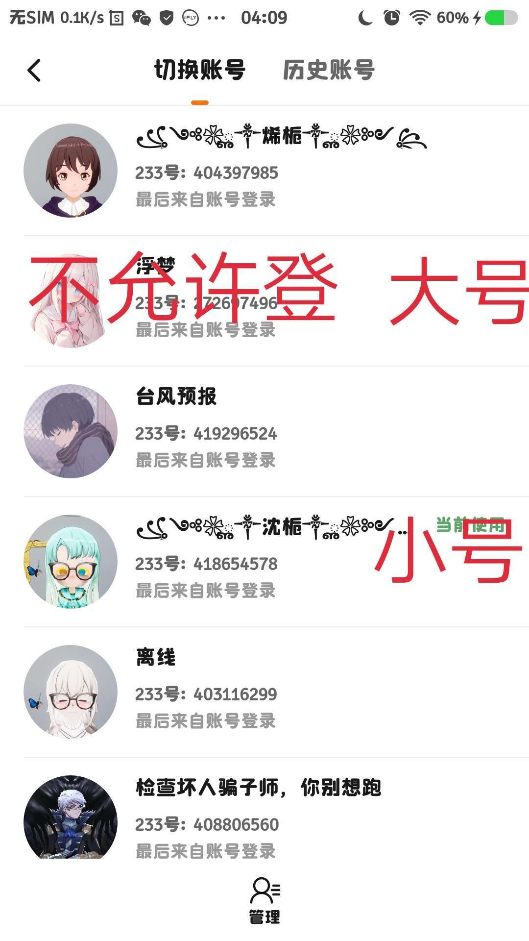 你们要哪个账号?。每人只能登一人