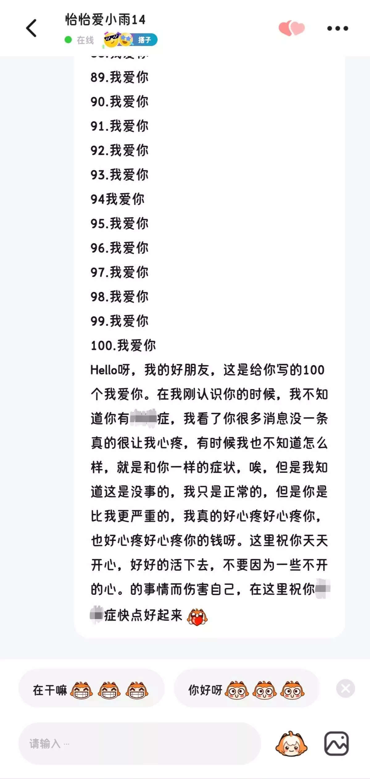 他会给我写100个我爱你