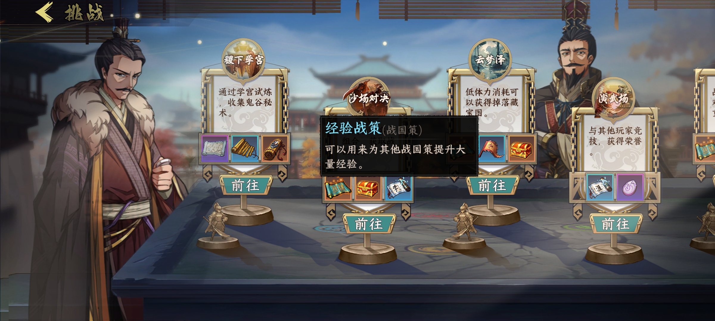 经验战策能提供大量经验,其他战策所增加的战策经验相对少一点,经验战策可以通过挑战-决战沙场玩法,以及军团活动-剧毒妖王玩法获取。