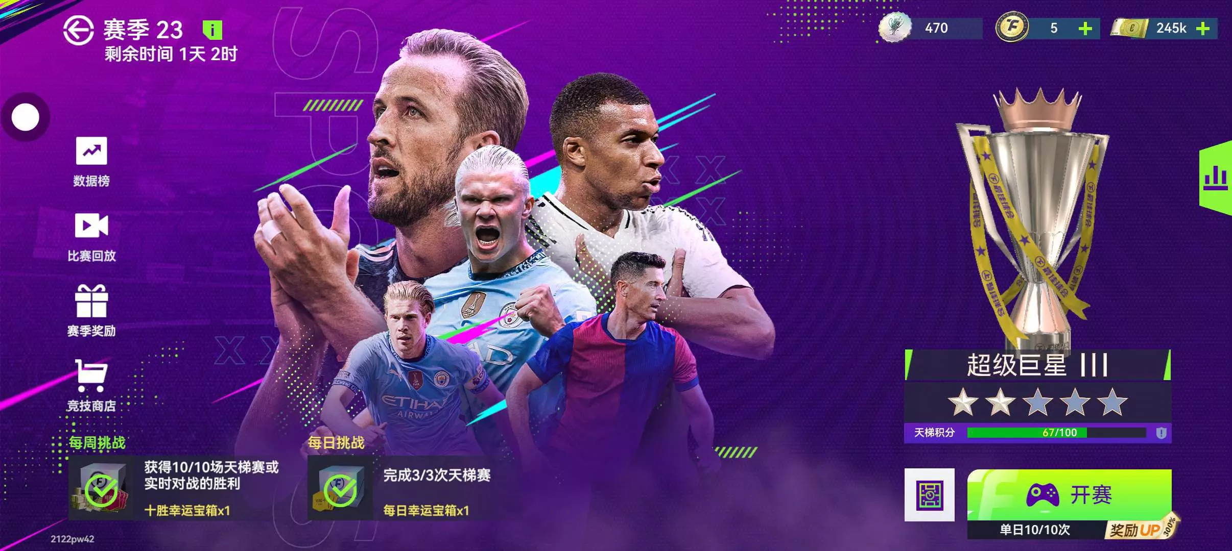 1.为MBAPPE天梯打上传奇2.为*****天梯从新手打到超级巨星3.个人传奇上100星