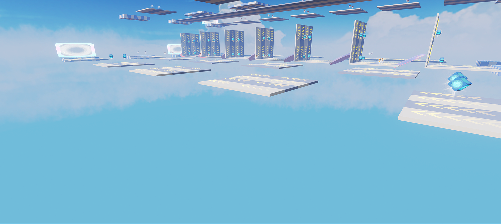 🌟整体由蓝 白两种颜色搭配,是一个竞速炫技地图,每关都使用了道具箱,每关道具不同,玩法不同,整体难度较难,只要掌握技巧,通关是很简单的